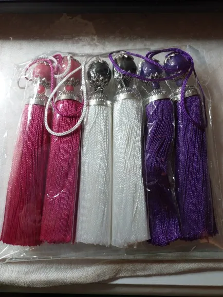 Lote de 2 unidades de borlas de seda, flecos, borlas, eslinga, adorno de borlas con cuentas, colgante para coser cortinas, accesorios de joyería, bricolaje, decoración de boda