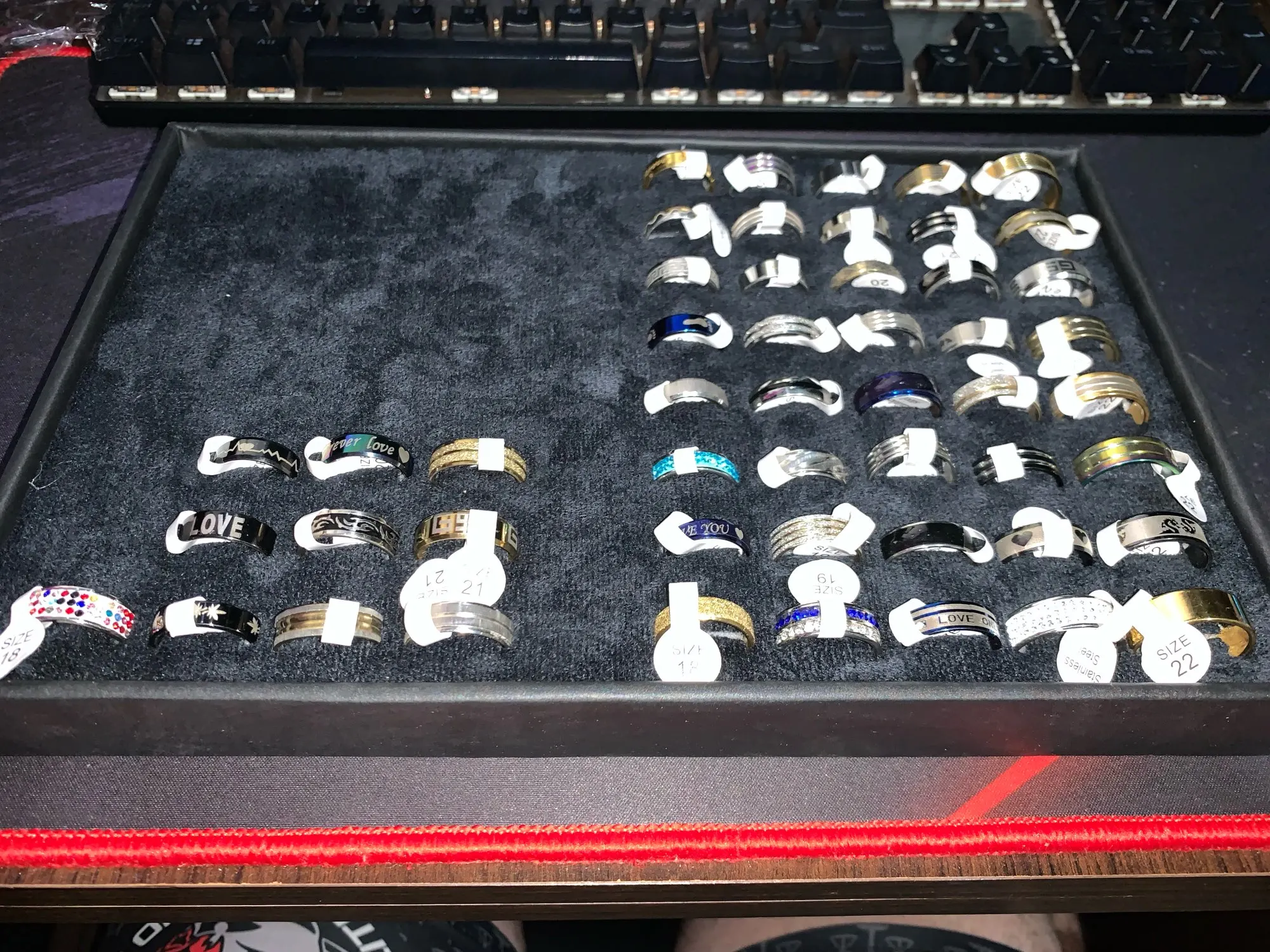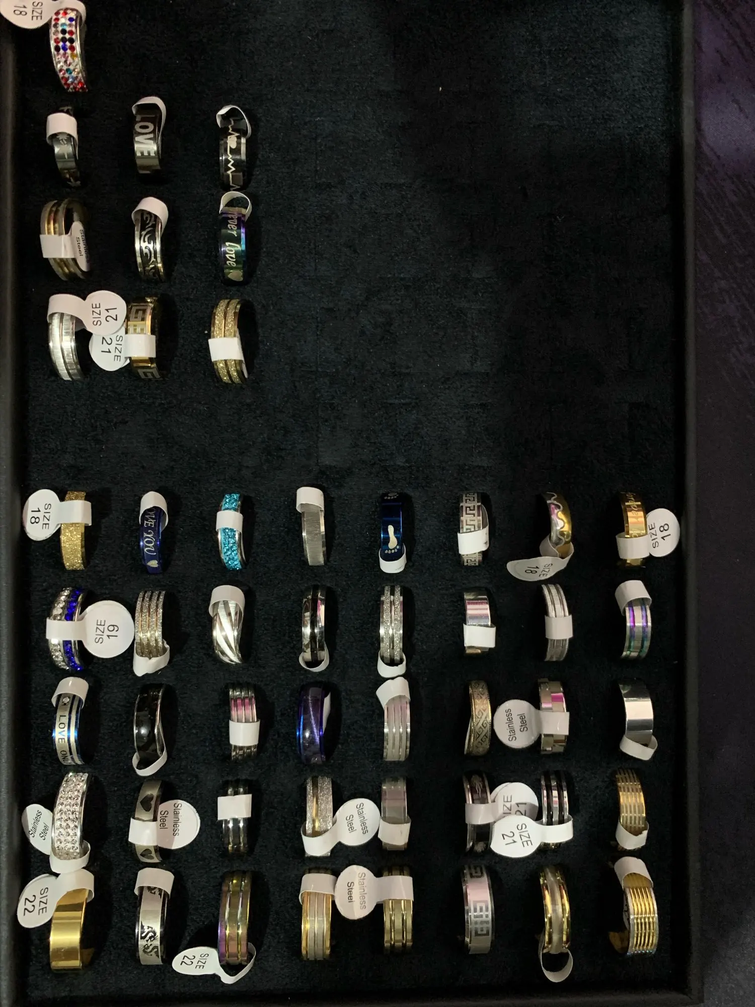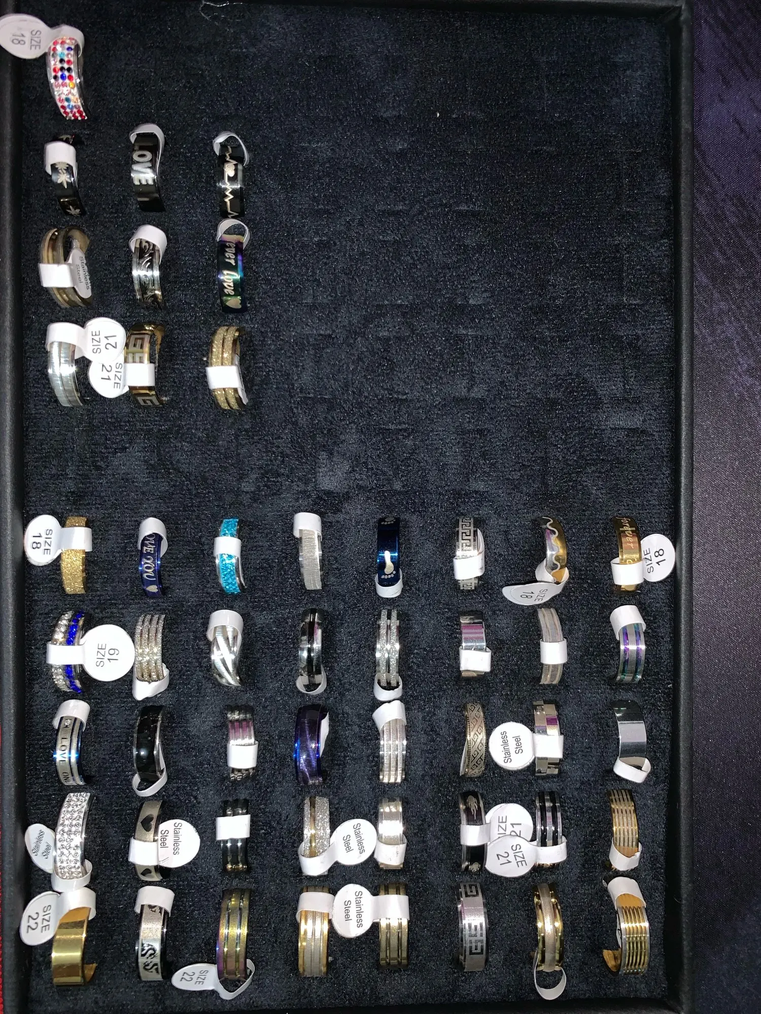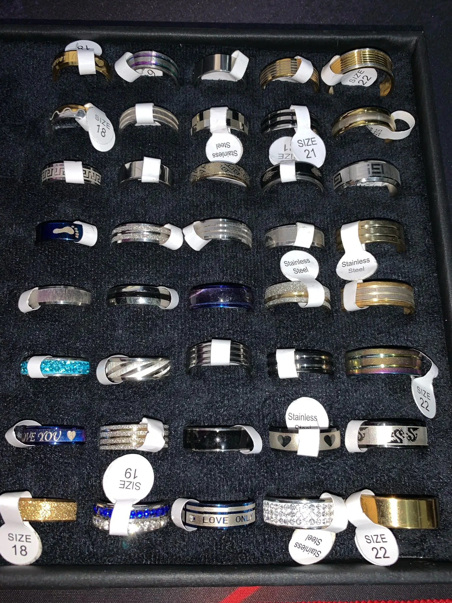 Lote de 50 Uds. De anillos de acero inoxidable unisex, joyería de moda para fiesta, sortija de boda, joyería de estilo aleatorio