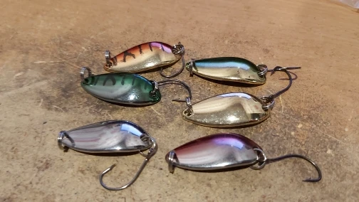 Lote de 6 unidades de cebo de pesca de 3g y 3,1 cm, cuchara metálica de pesca, señuelo para trucha, cucharas de lubina, cuchara de lentejuelas giratorias duras pequeñas