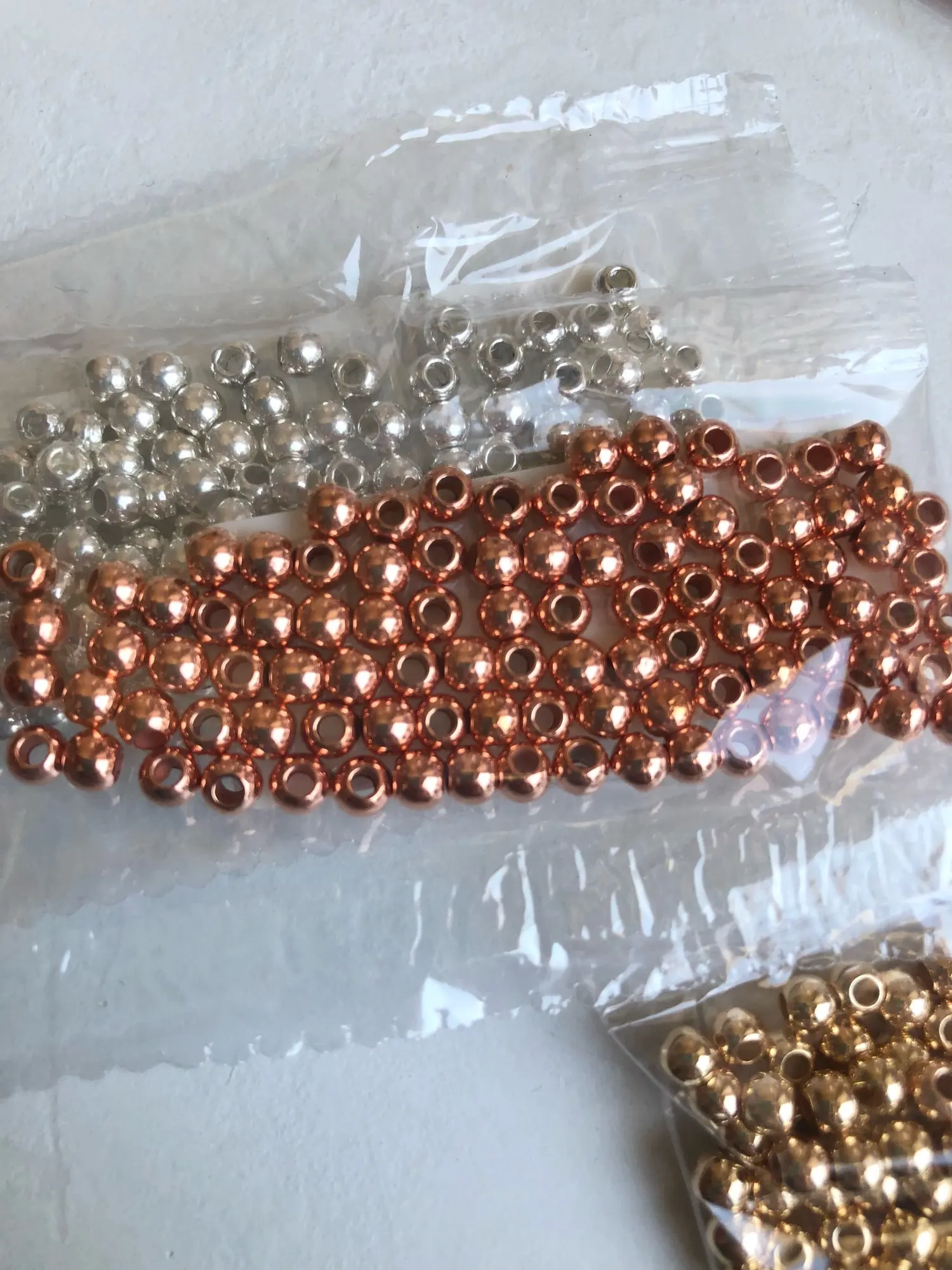 Lote de cuentas espaciadoras CCB de agujero grande para la fabricación de joyas, accesorios para manualidades, color dorado y plateado, diámetro de 4, 6, 8, 10 y 12mm, 30 a 100 unidades
