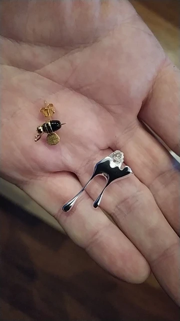 Lotus Fun-Conjunto collar y pendientes diseño abeja y miel para mujer, juego de colgantes y aretes, joyería, plata esterlina 925, primera ley, oro de 18 quilates, 18K, hecho a mano