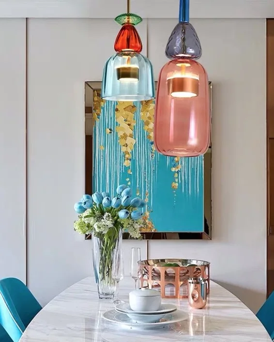 Luces LED colgantes de fruta de colores nórdicos, iluminación para colgante para el salón, lámpara colgante de cocina, accesorios de iluminación de cristal para interiores