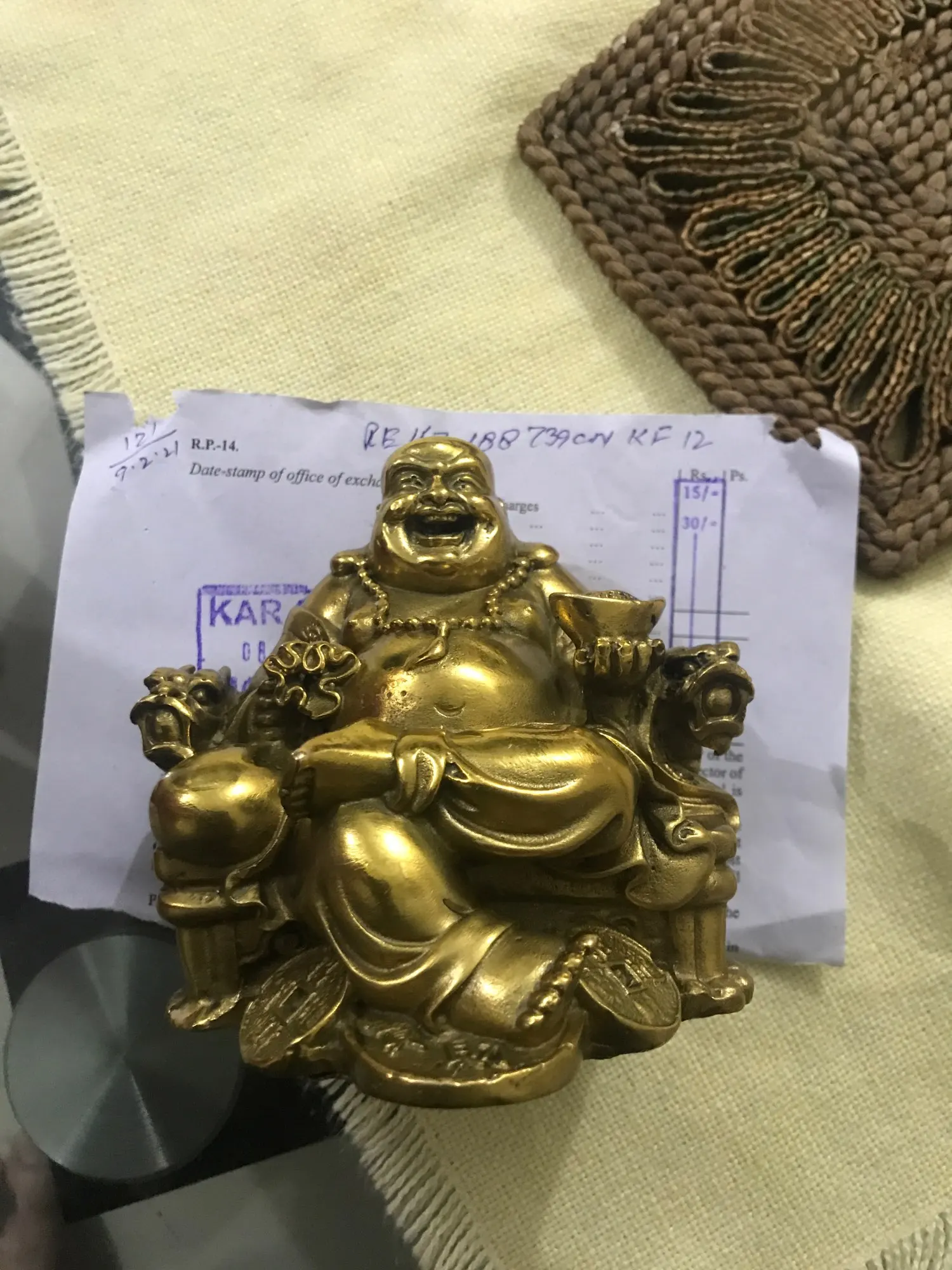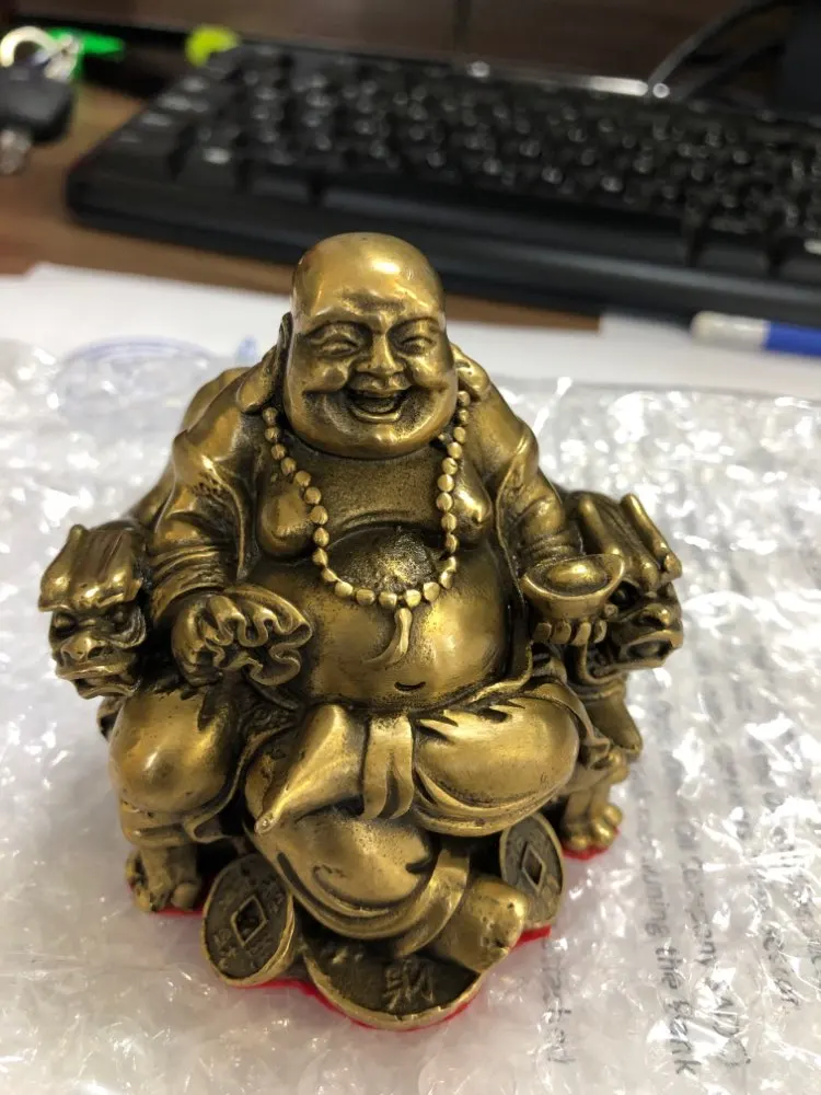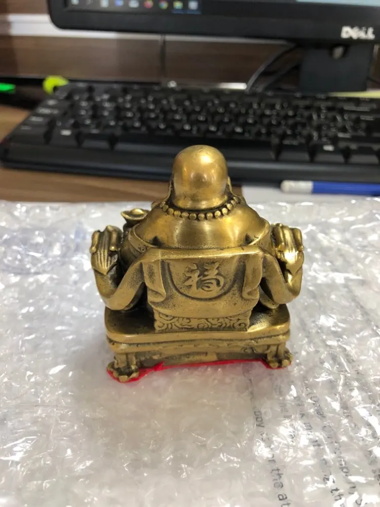 Lucky Maitreya estatua Feng Shui ornamentos luz abierta cobre puro artesanías tesoros riqueza Buda hogar coche Decoración