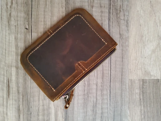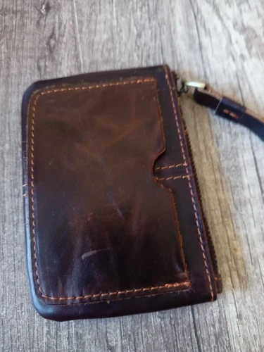 Luufan-monedero Vintage Crazy Horse de cuero genuino para hombre, monedero con cremallera de cuero genuino, soporte para llave Retro, monedero pequeño, bolso de mano
