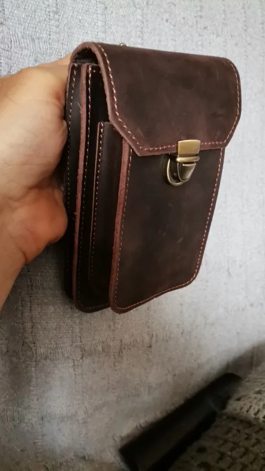 Luufan-riñonera pequeña informal de cuero auténtico para hombre, bolso de cuero de vaca, a la moda, con gancho, cinturón, funda para cigarrillos, bolsa para teléfono de 5,5 pulgadas