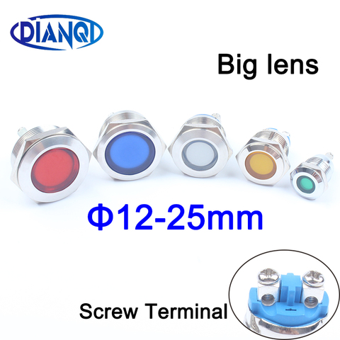 Luz indicadora de advertencia LED de Metal, lámpara de señal impermeable de 12mm, 16mm, 19mm, 22mm y 25mm, cable piloto de 3V, 6V, 12V, 24V y 220v, conexión de tornillo
