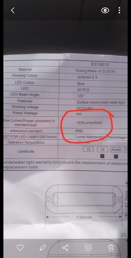 Luz LED de popa para barco o barco, lámpara de acero inoxidable impermeable, pontón submarino, 12V, 42LED, 316SS, 1 ud.