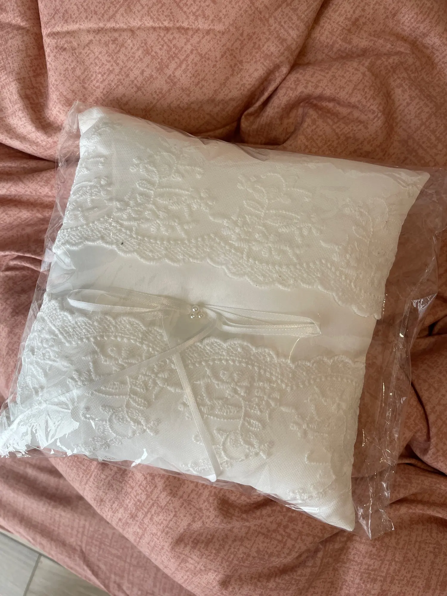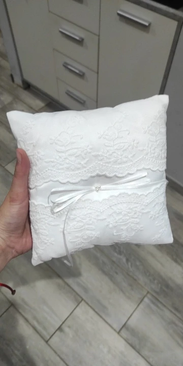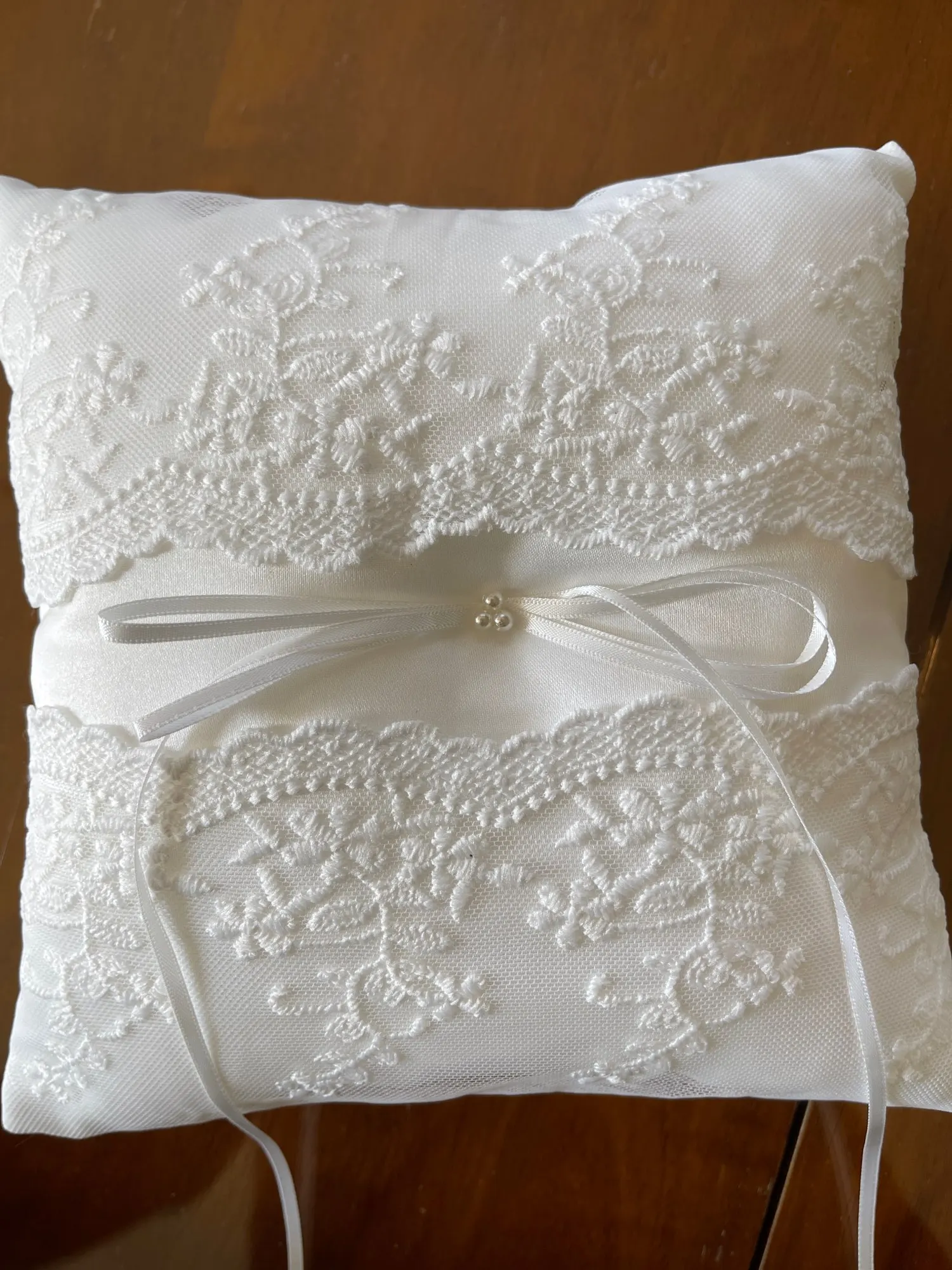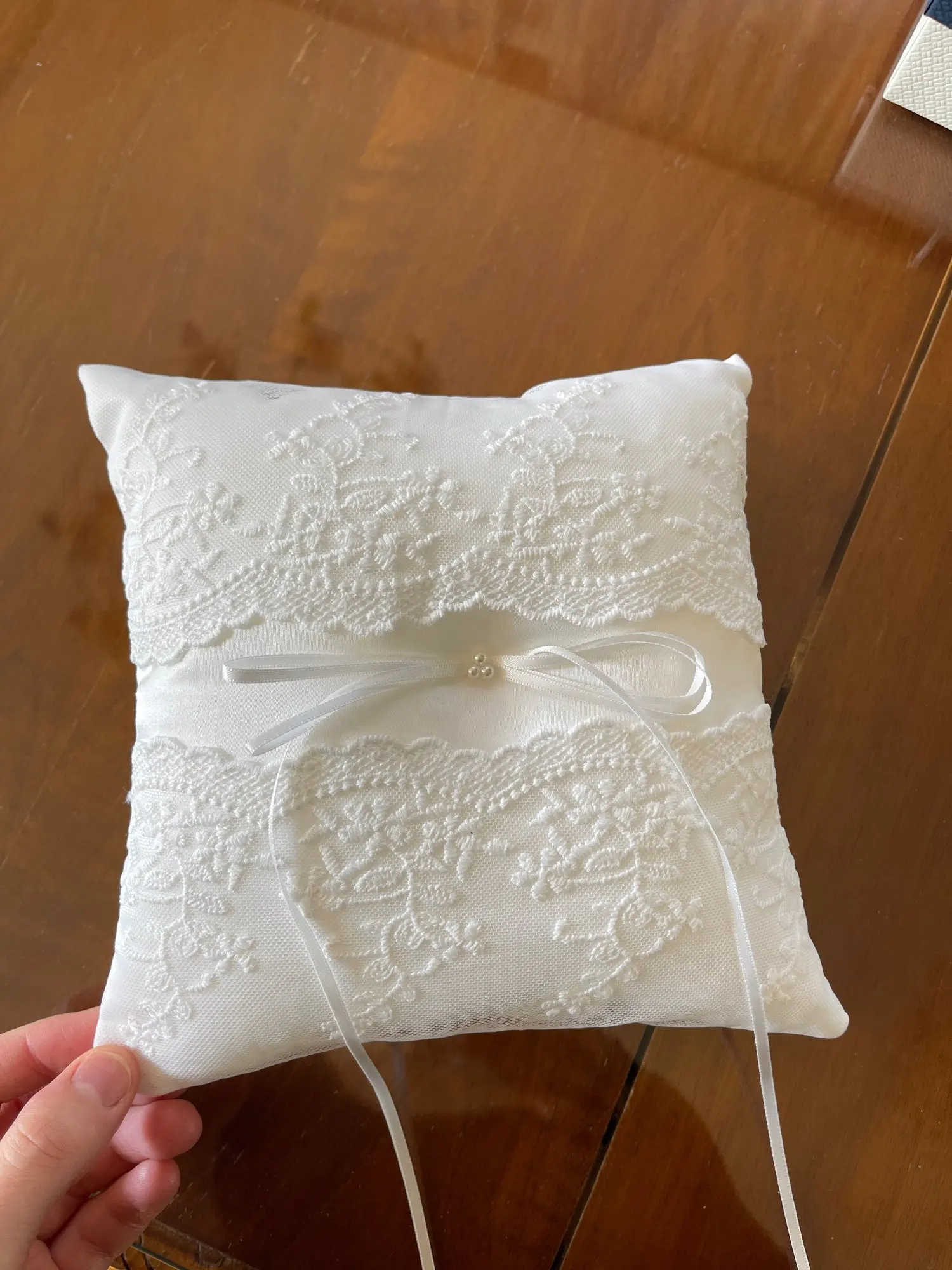 MagiDeal-anillo almohadilla de encaje con perlas para boda, delicado anillo almohadilla, portador para boda, propuesta de compromiso, decoración, color blanco