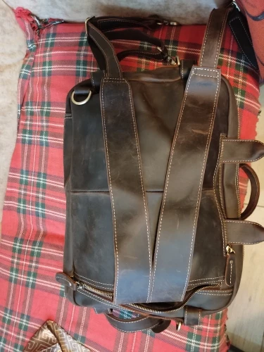 MAHEU-mochila de cuero de alta calidad, morral de piel de vaca con doble cremallera de piel de vaca, bolsa de viaje para oficina, bandoleras de doble uso, Cuero Puro