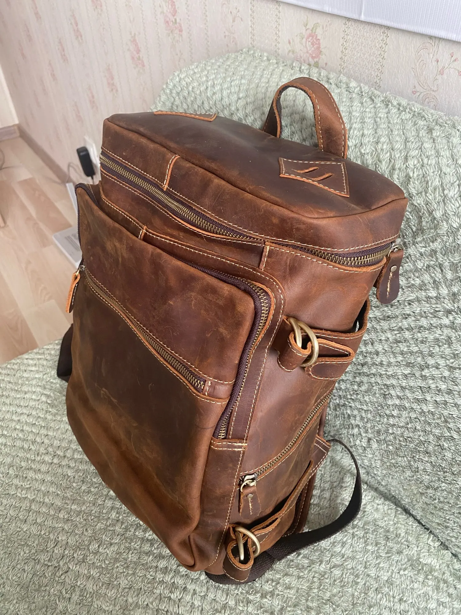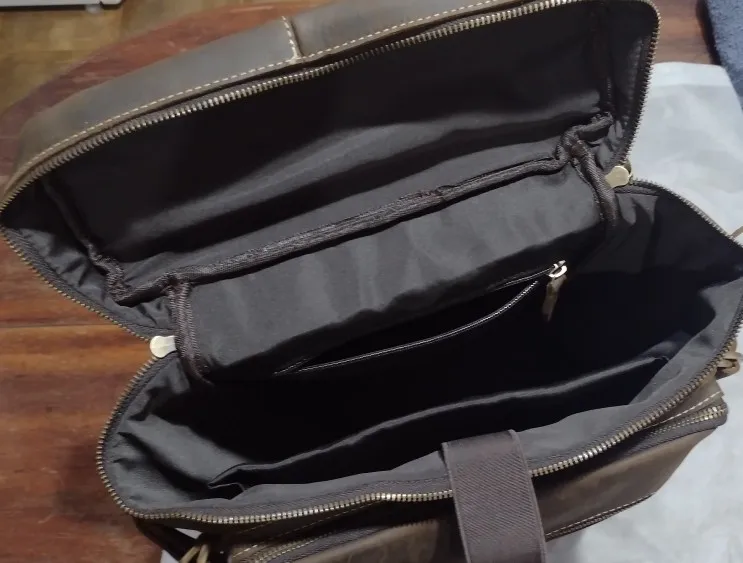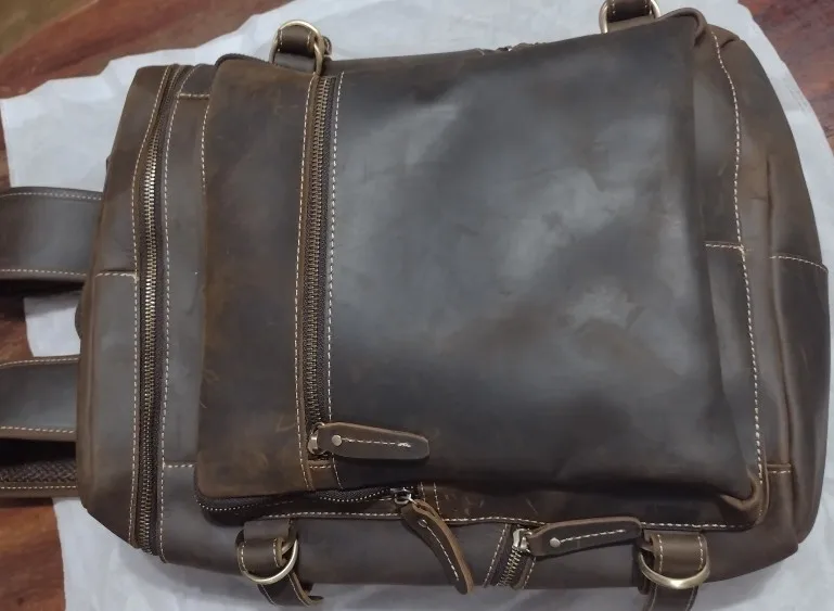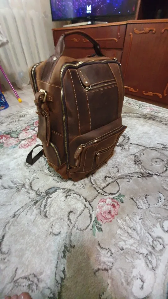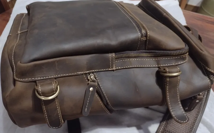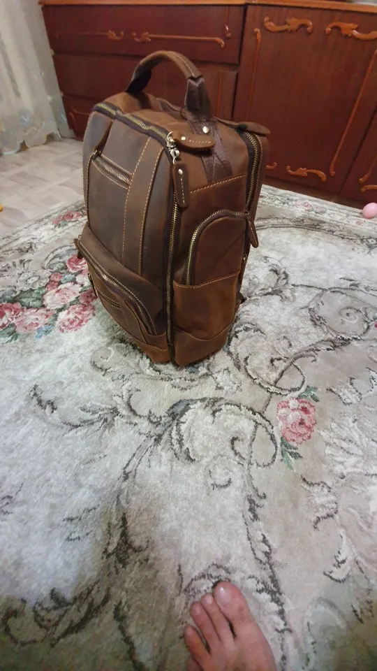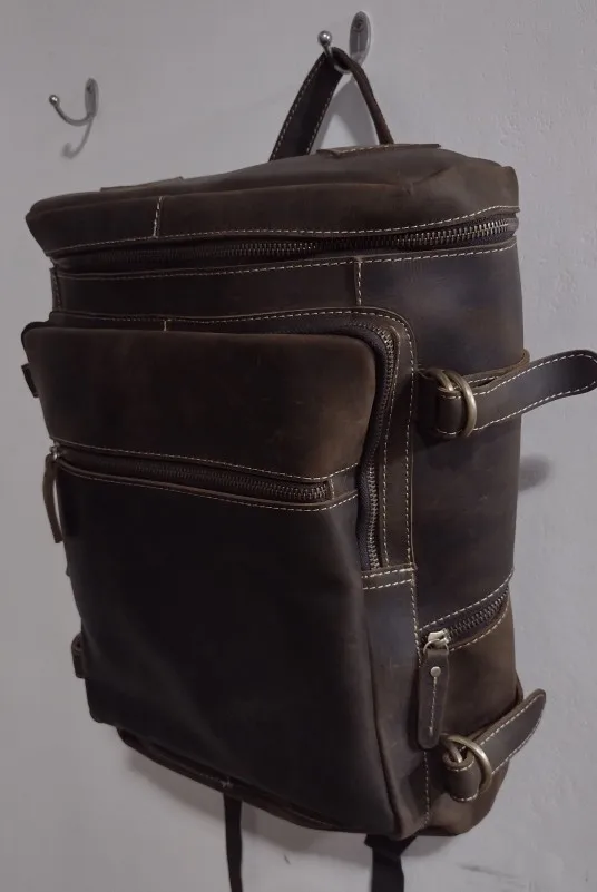Perfecta. Como en la foto. En 10 días en casa a la mitad de precio que en Amazon. Cabe un portatil de 16 pulgadas sin problemas. Si prefieres meterlo con con un maletin-funda acolchado de mano, tipo second skin, por ejemplo de tomtoc, cabe también siempre que no lo metas en la parte acolchada de la mochila. Es una opción a tener en cuenta dado que todas las mochilas traen un acolchado fino para mi gusto. Esta lo trae mejor que otra que tengo, en cualquier caso. El cuero se ve de calidad, bonito, natural y sin mal olor. Bien forrada por dentro. Cabe un portatil y una libreta gorda sin problemas en el compartimento principal. Accesorios como hub usb y cargador en el bolsillo.