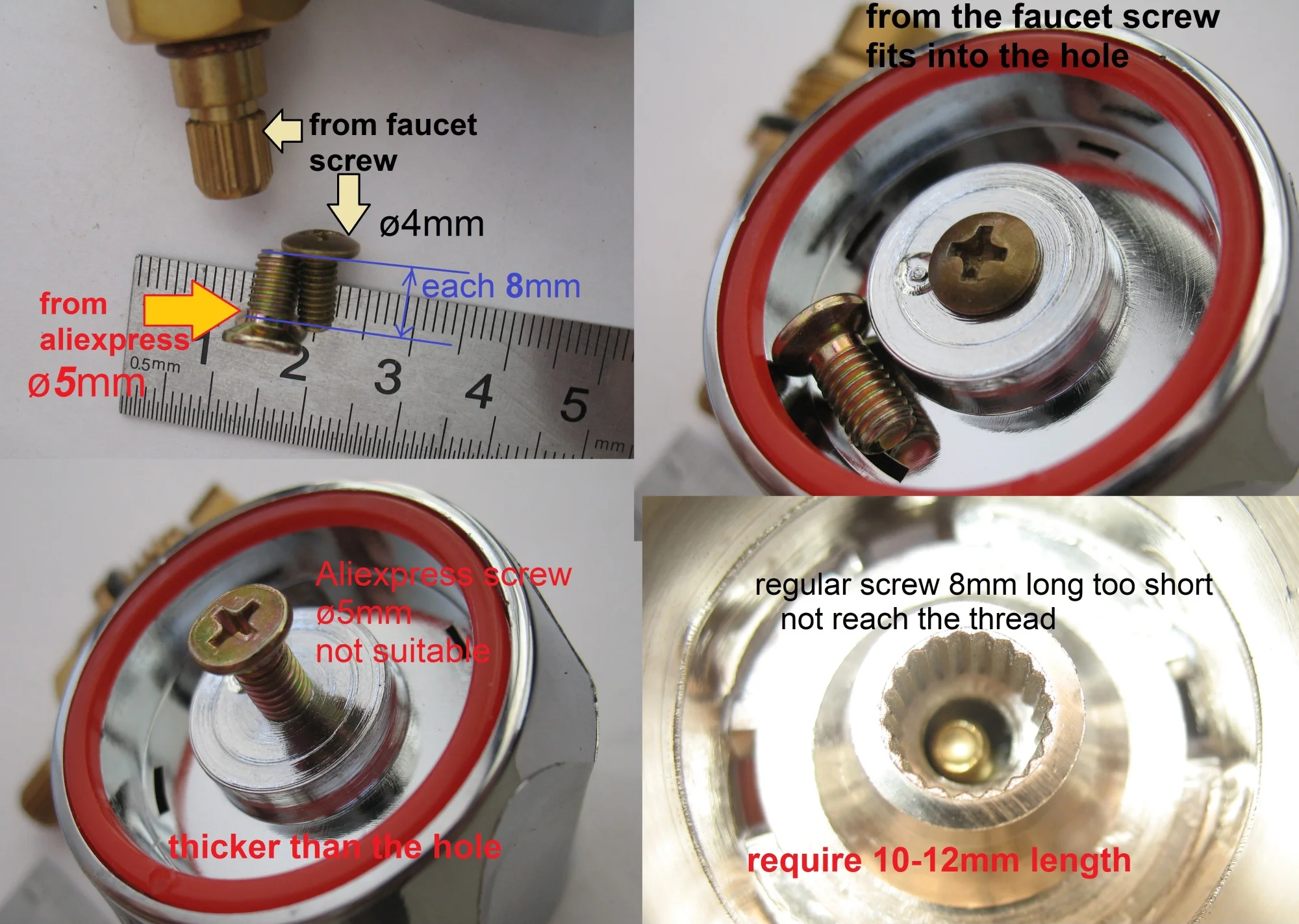 Manilla de repuesto Universal para grifo frío y caliente, manilla de tono plateado, rojo + azul, 2 unids/set, manilla para grifo, accesorios de baño