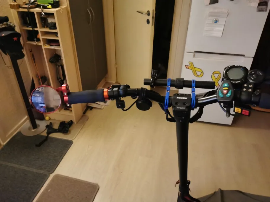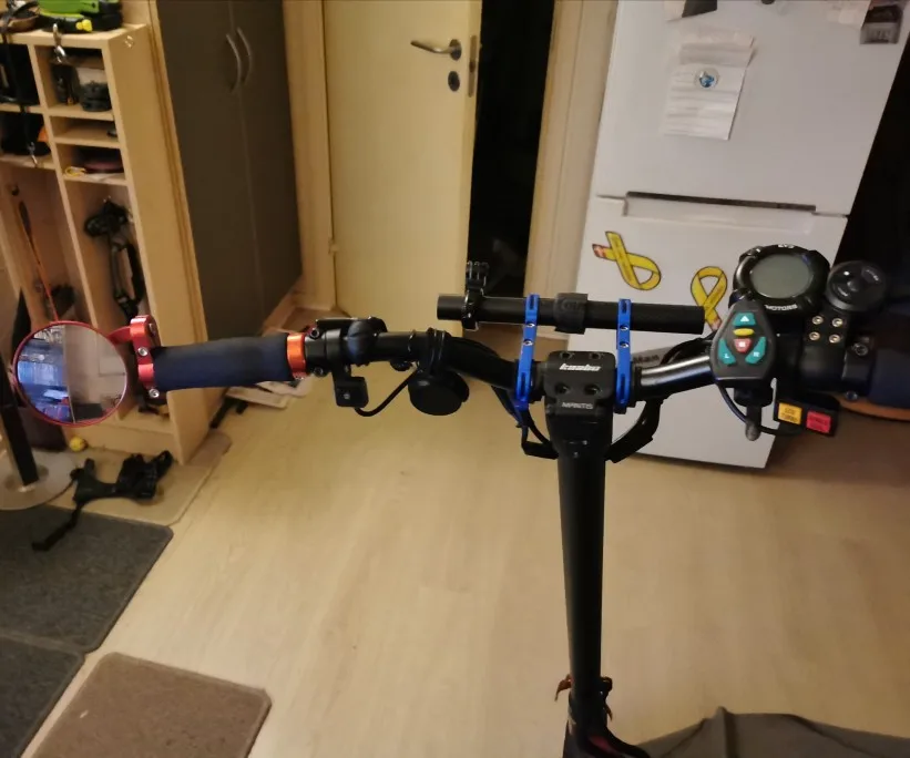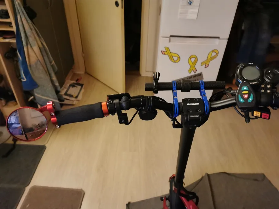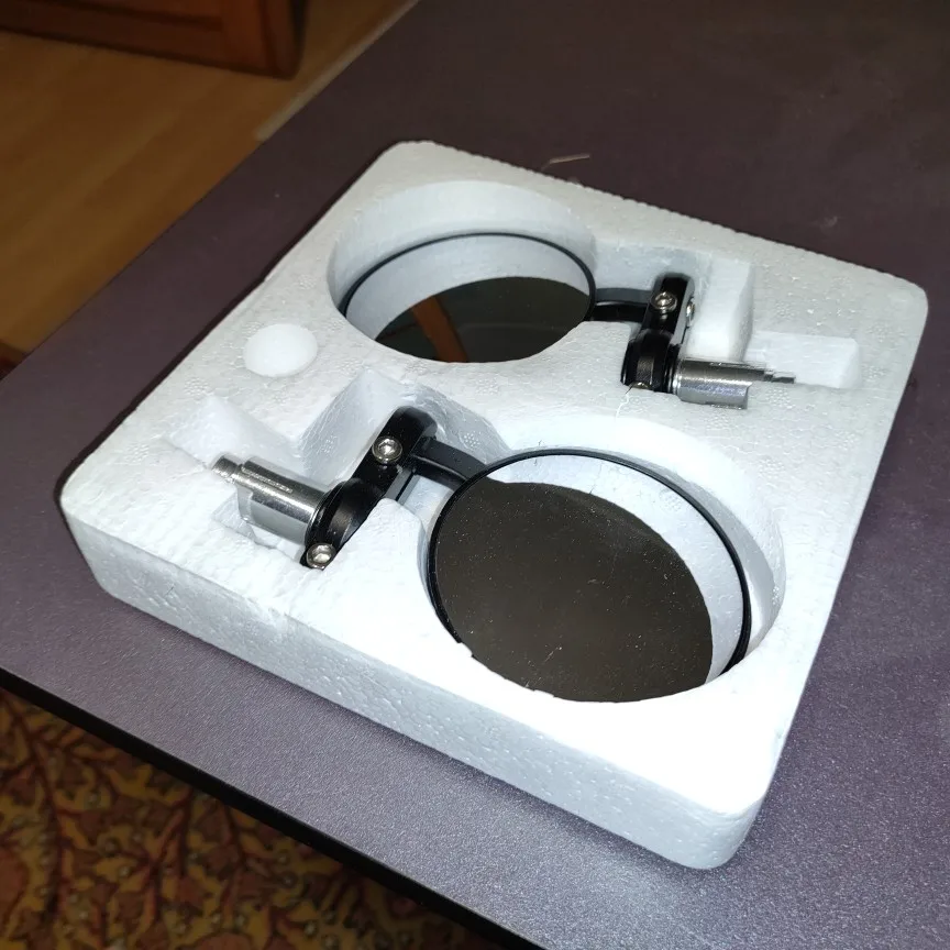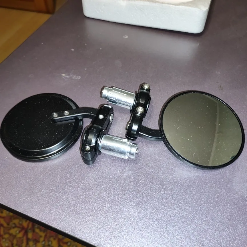Poco ajustables pero son de metal y se ajustan rápido. Espejo de buena calidad, tiene buen campo de visión.