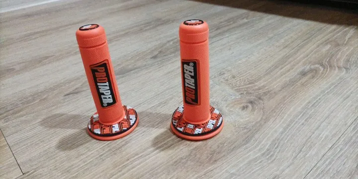 Buenos puños se agarran al manillar muy bien,lo malo es el acabado del material queda con burbujas el puño y en algunas partes no esta bien pegada la marca en el puño,pero bueno muy contento.