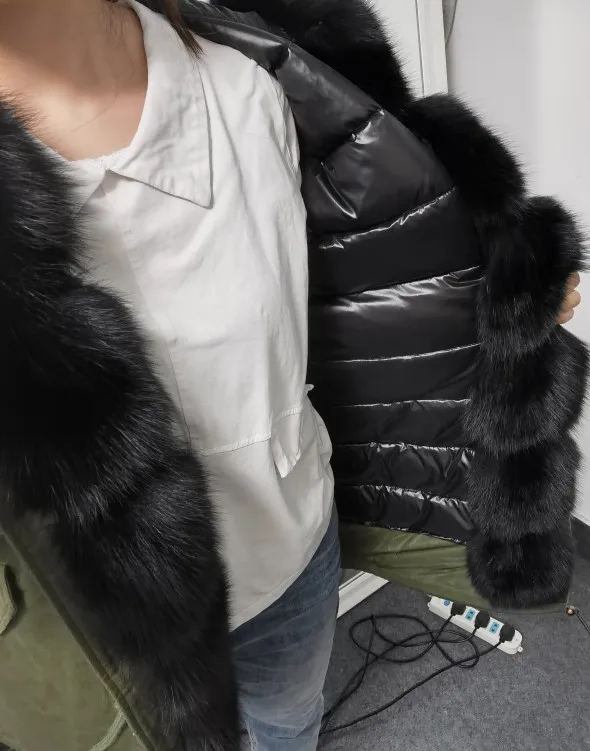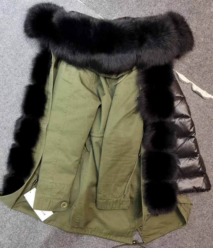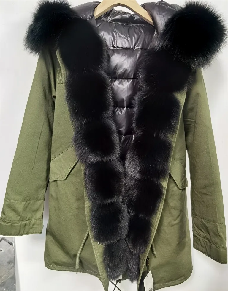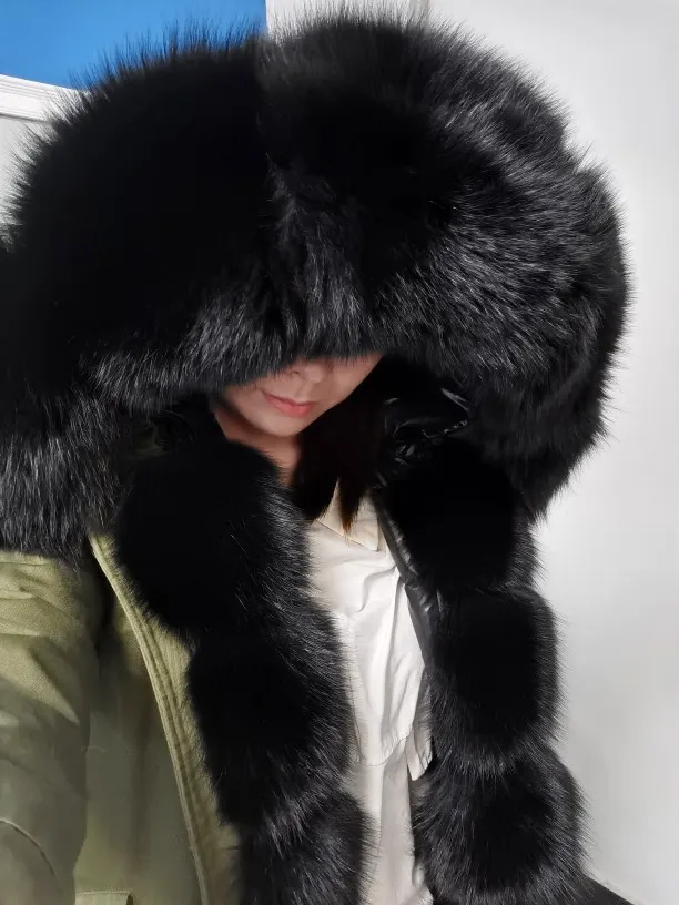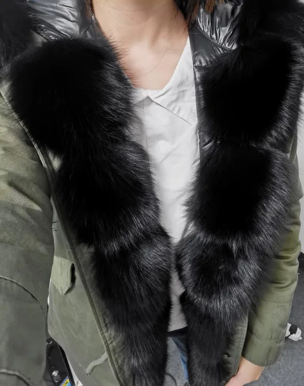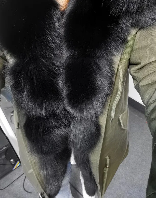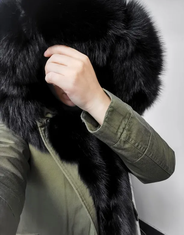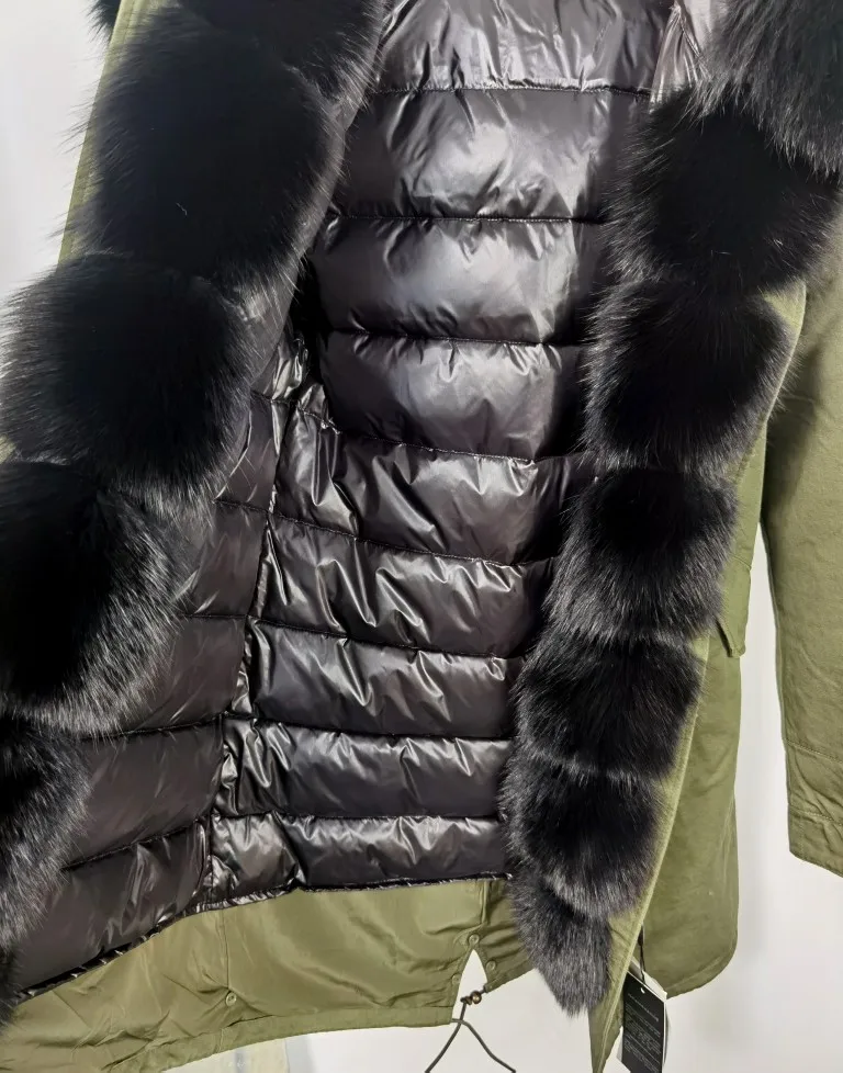 MAOMAOKONG-abrigo de invierno de talla grande para mujer, chaqueta de piel de mapache auténtica con cuello grueso, parka verde militar, jac cálido