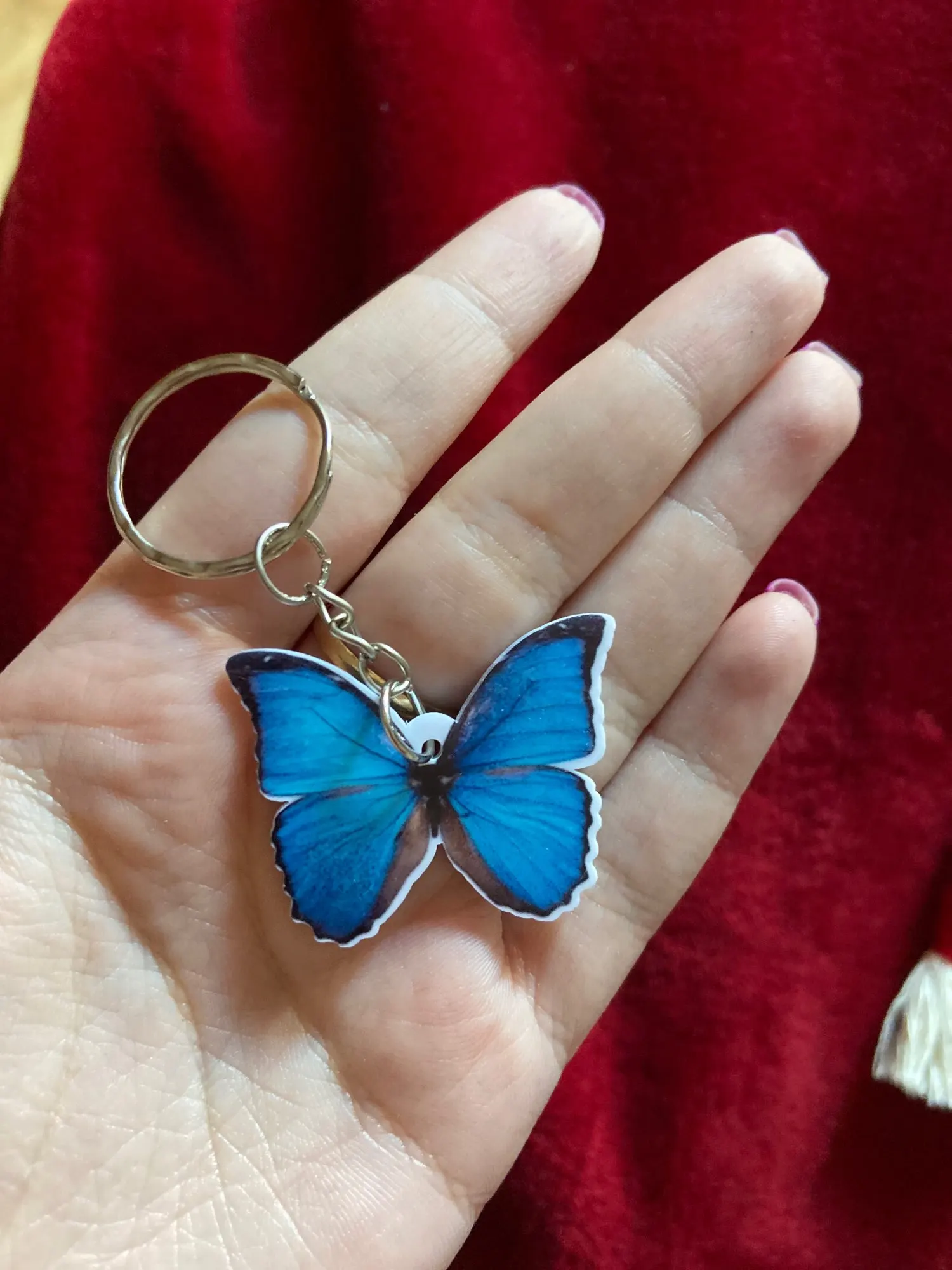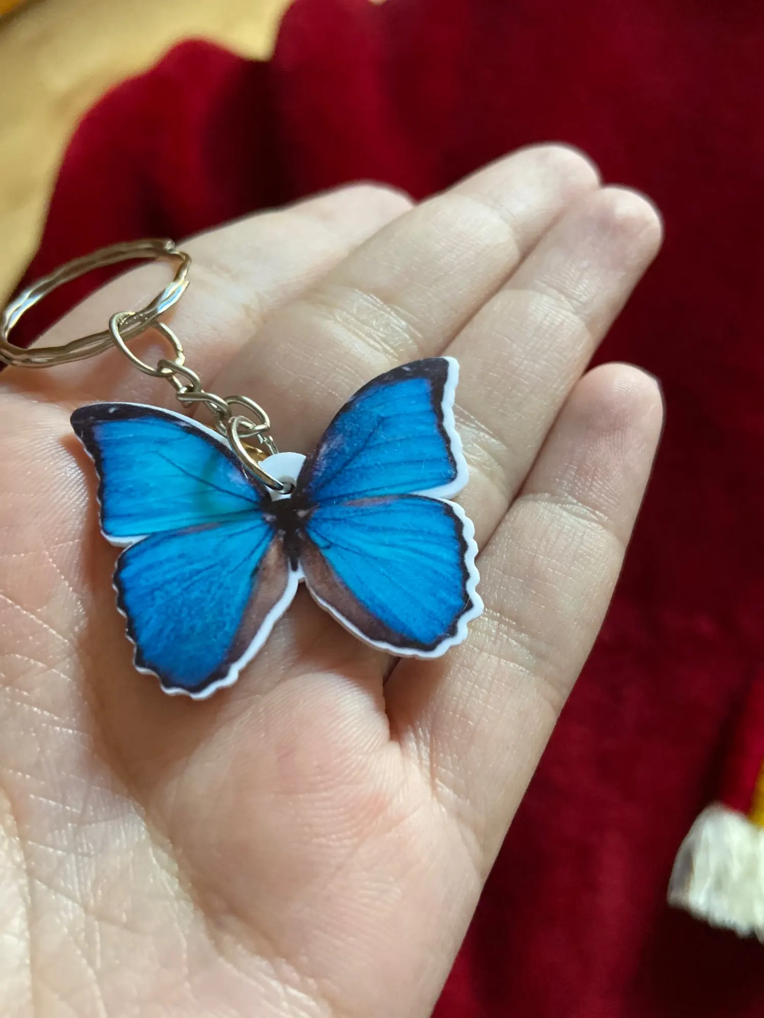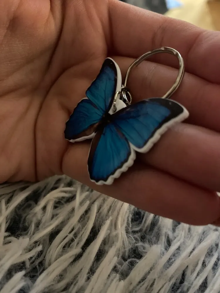 Mariposa azul llavero de acrílico de vuelo ala de vuelo perros de acero colgantes del llavero regalo mejor amigo clave cadena accesorios llavero hombres de juguete