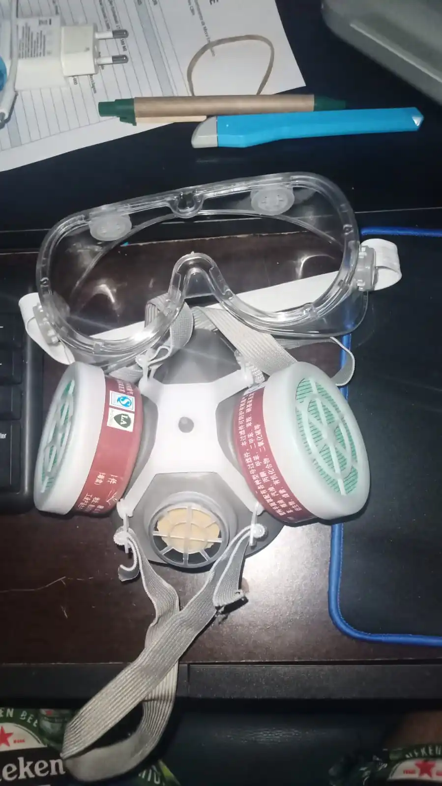 Mascarilla de Gas con filtro antipolvo para pintura, respirador con gafas protectoras, válvulas de respiración, minero de construcción ligero