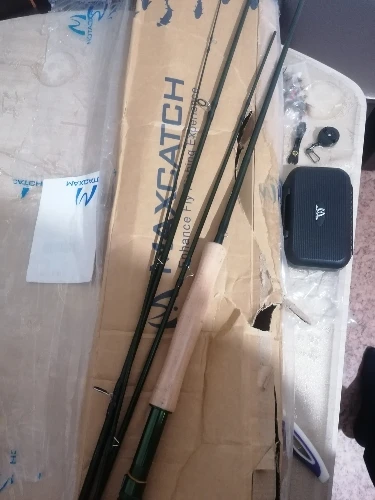 Maximumcatch-caña de pescar de fibra de carbono, Combo extremo 3-8WT, medio-rápido, con carrete de grafito y línea de mosca y caja de aparejos, tubo triangular