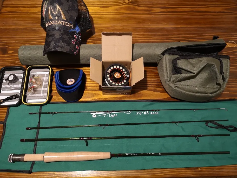Maximumcatch-caña de pescar pequeña Stream Creek, carrete y sedal de aluminio, Combo 2/3 WT 6 '-7' 6 '', caña de pescar de carbono superligera