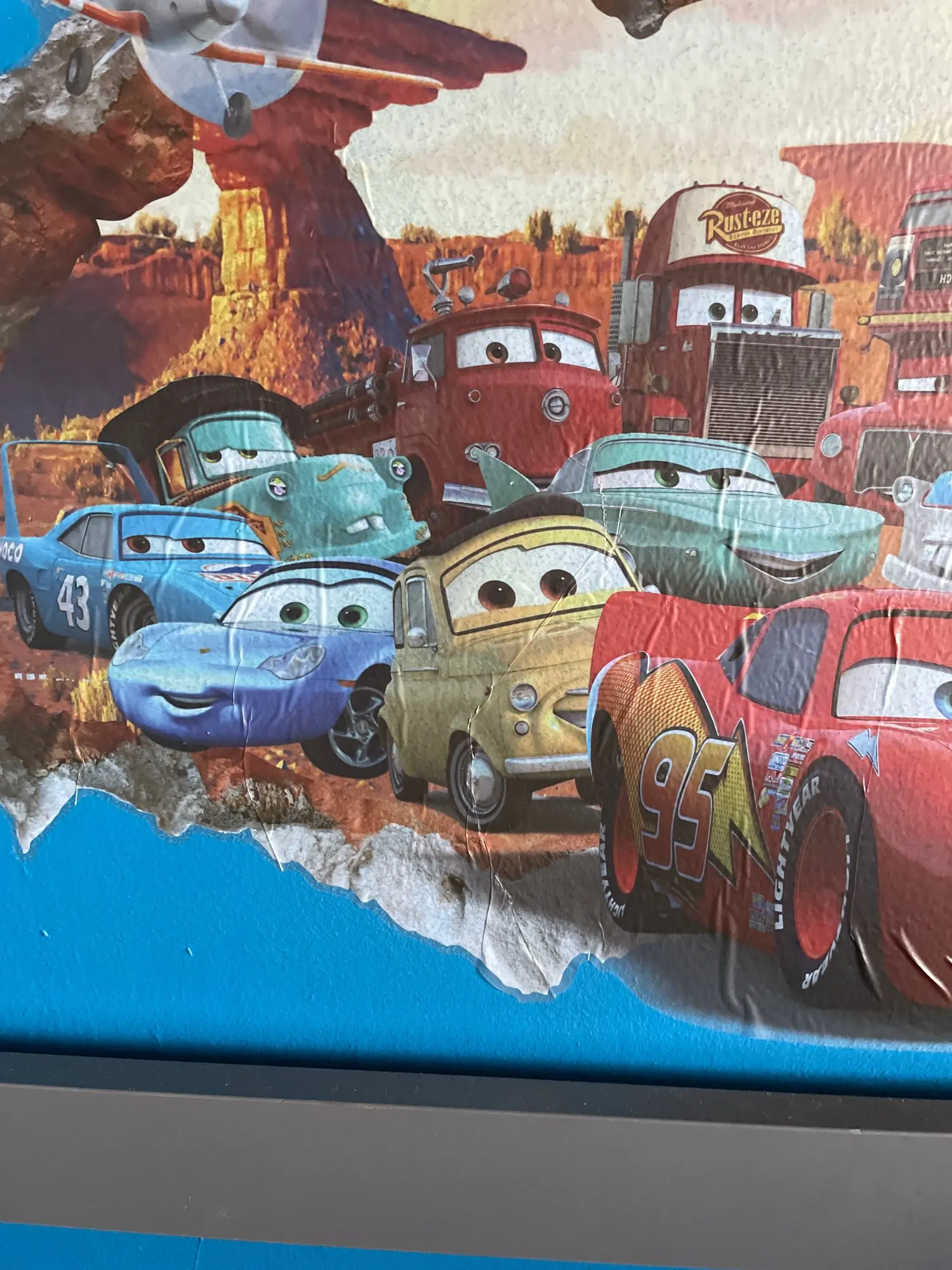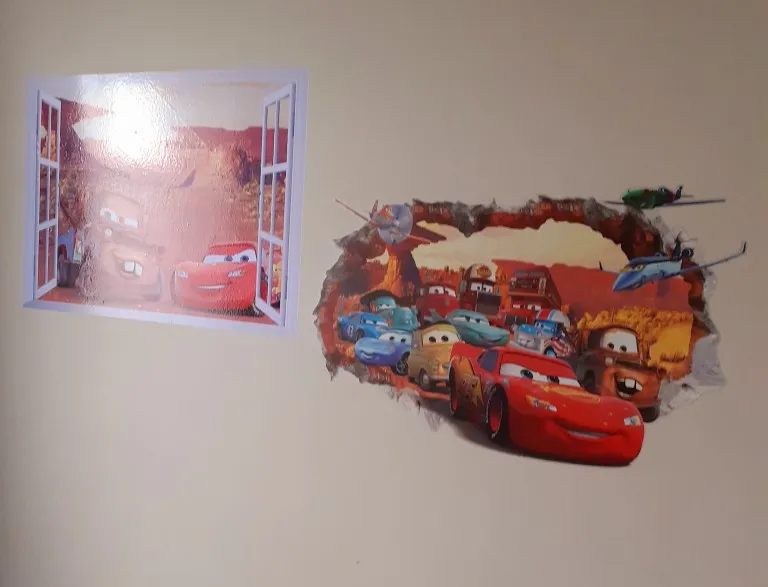 Mcqueen-pegatinas de pared de dibujos animados en 3D para habitación de niños, ventana falsa de PVC, murales, pegatinas, decoración de habitación, guardería