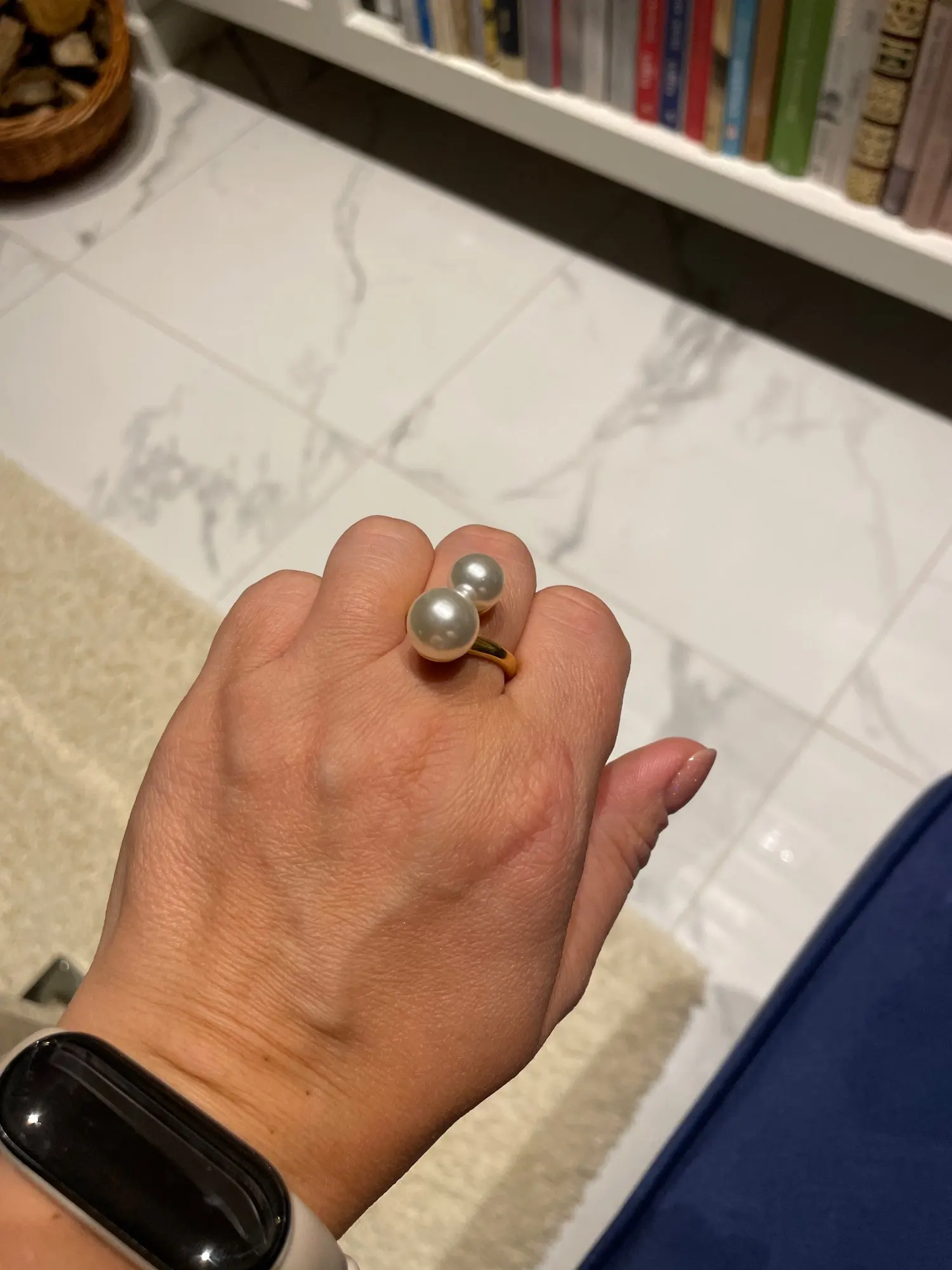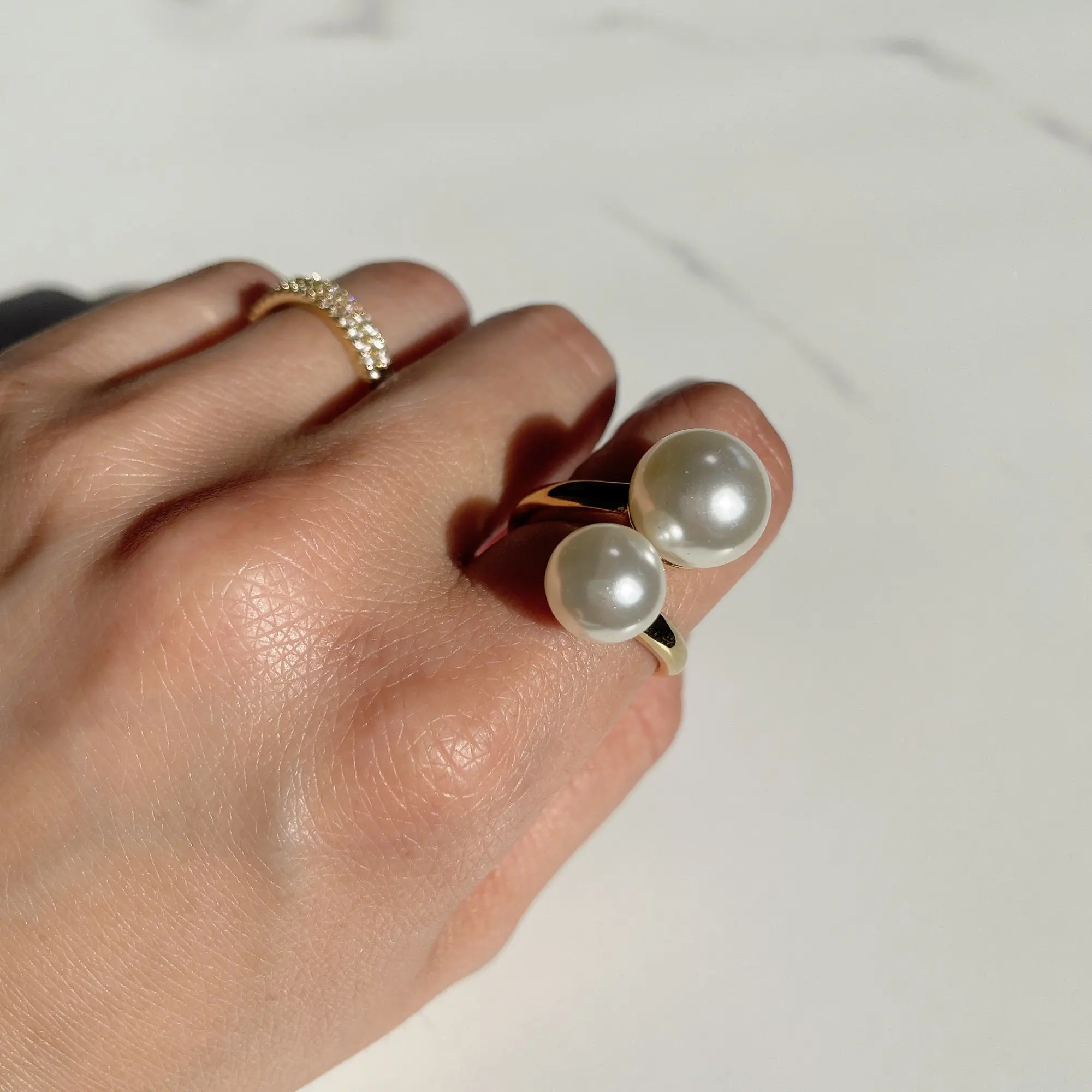 Meaeguet-anillos de perlas simuladas para mujer, acero inoxidable abierto, estilo Bypass