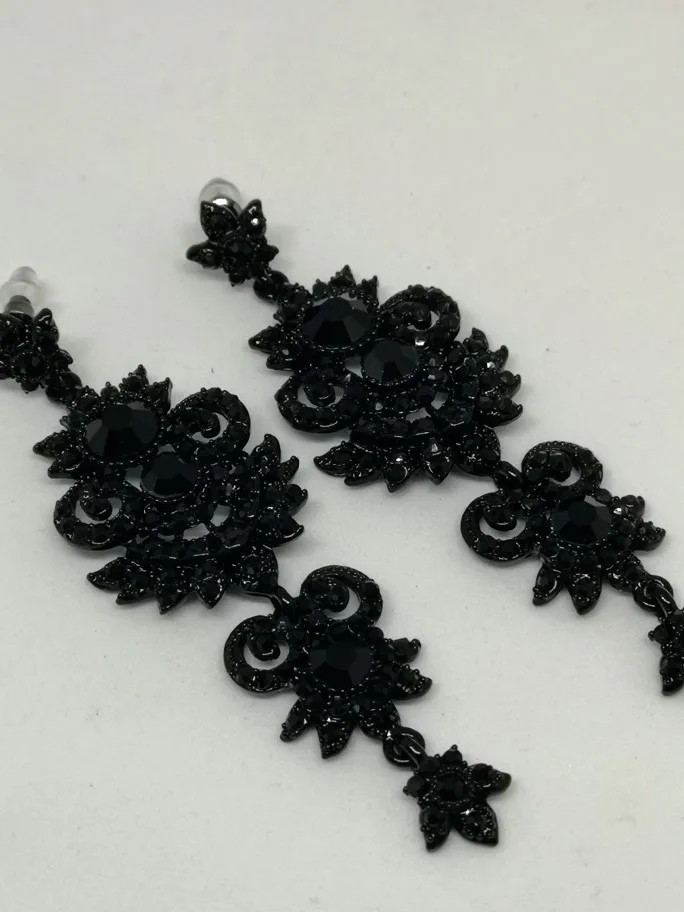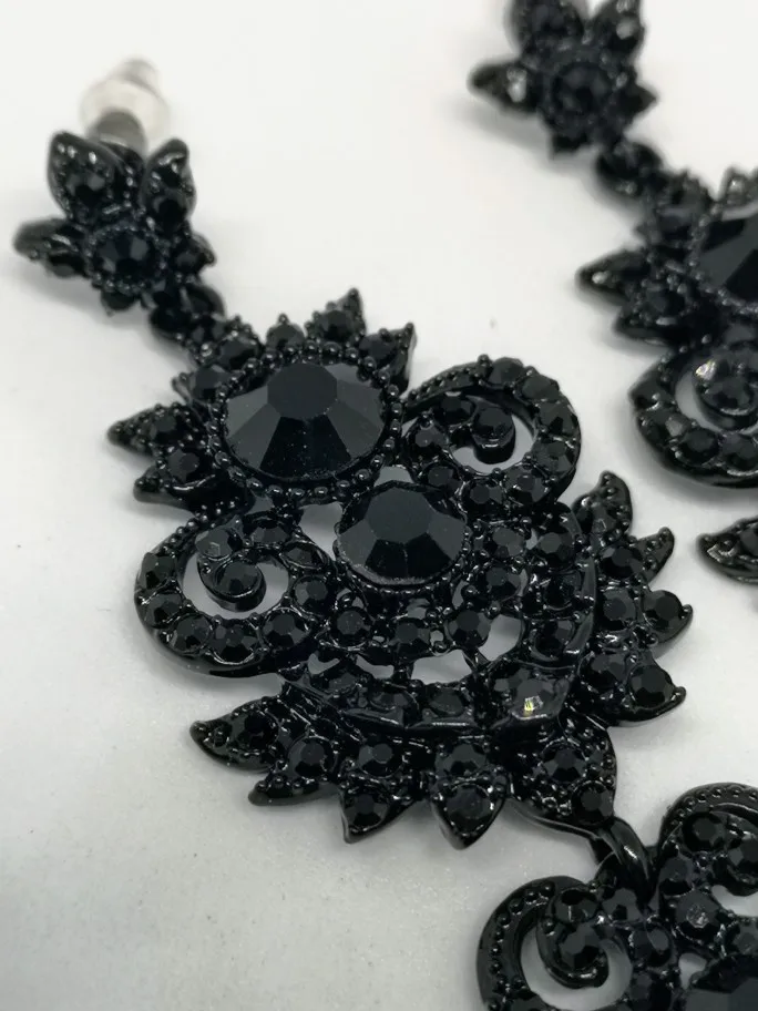 Mecresh-pendientes grandes con estilo para mujer, de cristal, Color negro, para novia, aretes largos de araña, joyería de boda, kh938