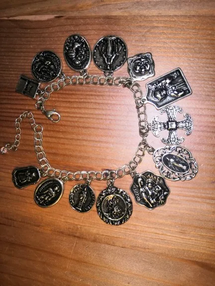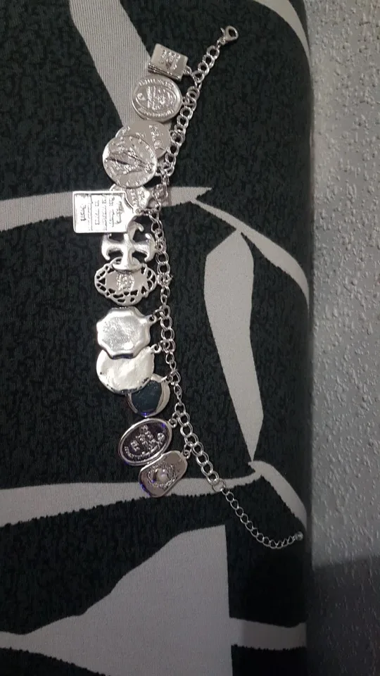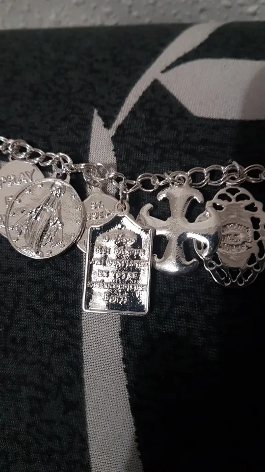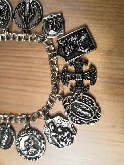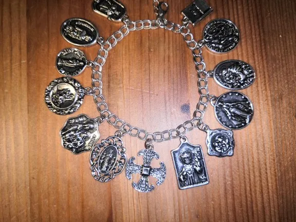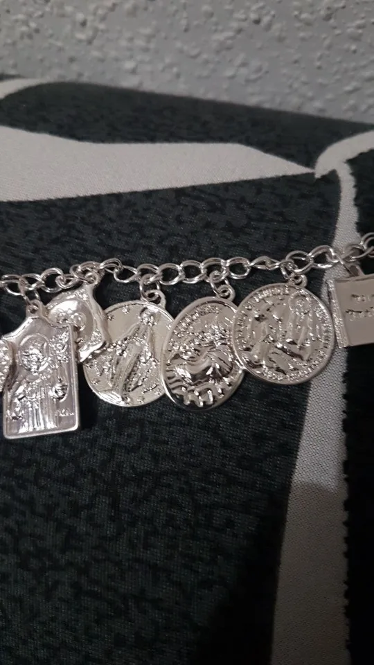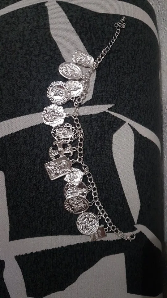 Medallas de la Iglesia religiosa católica chapadas en plata y oro Vintage, pulsera de cadena con cruces, joyería