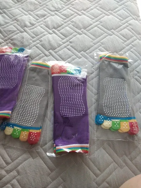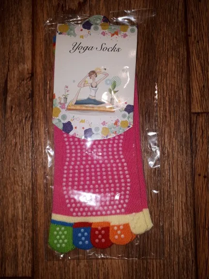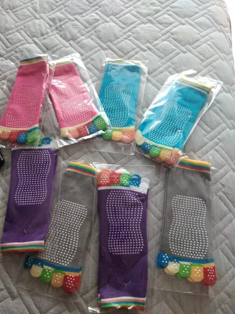 Medias de Yoga para Mujeres, antideslizantes, coloridas, de silicona, para gimnasio, Pilates, Ballet, Fitness, calcetines deportivos de algodón, 5 protectores de dedos de secado rápido, 1 par