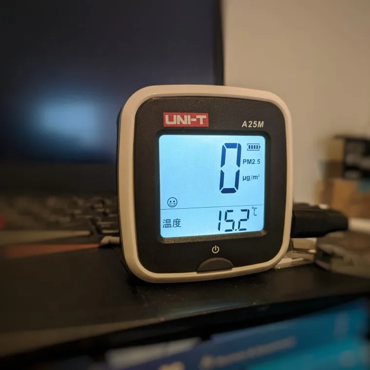 Medidor de calidad del aire, medidor de UNI-T A25M PM2.5, 0 ~ 500ug, metros cúbicos, rango automático, sobrecarga, indicador de entrada de batería