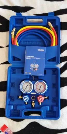 Medidor de flúor R22 R410A R134A para aire acondicionado, medidor de presión refrigerante de doble mesa con 3 uds. De tubo líquido