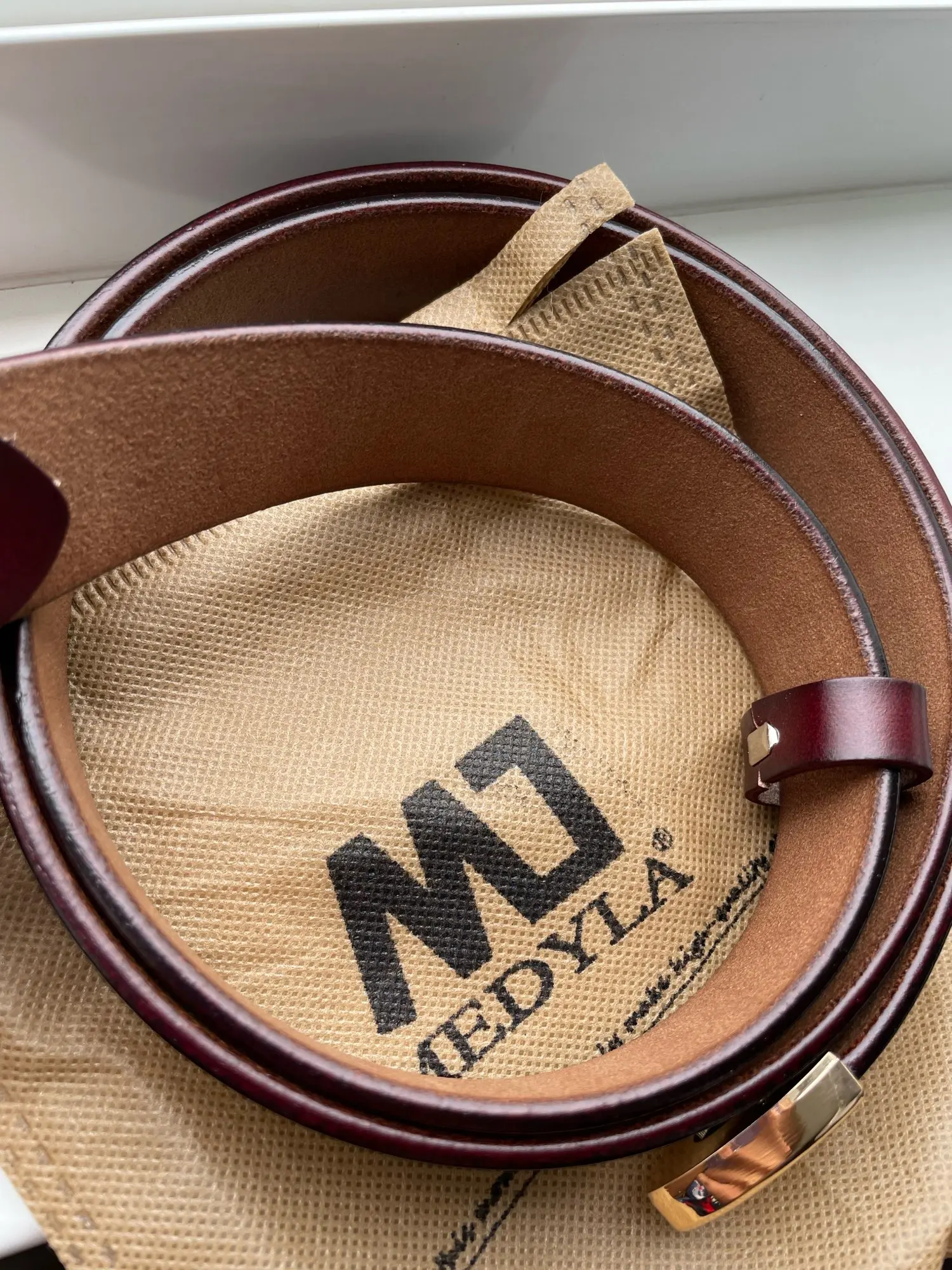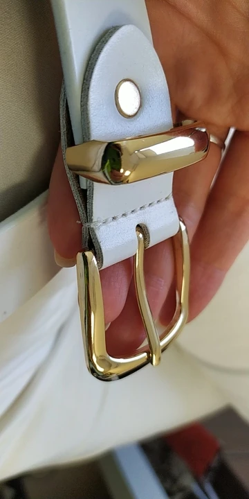 Súper contenta. Cinturones preciosos. Gasto la talla M o 36-38 de pantalones en España y esta talla me queda súper bien (si es más grande tampoco pasa nada, porque se ajusta más y ya está). Viene con bolsita para guardar los cinturores y súper bien embalados. Venían con una fundita de plástico protectora también, con la hebilla reforzada, que la quité para probármelos. Son de piel.
