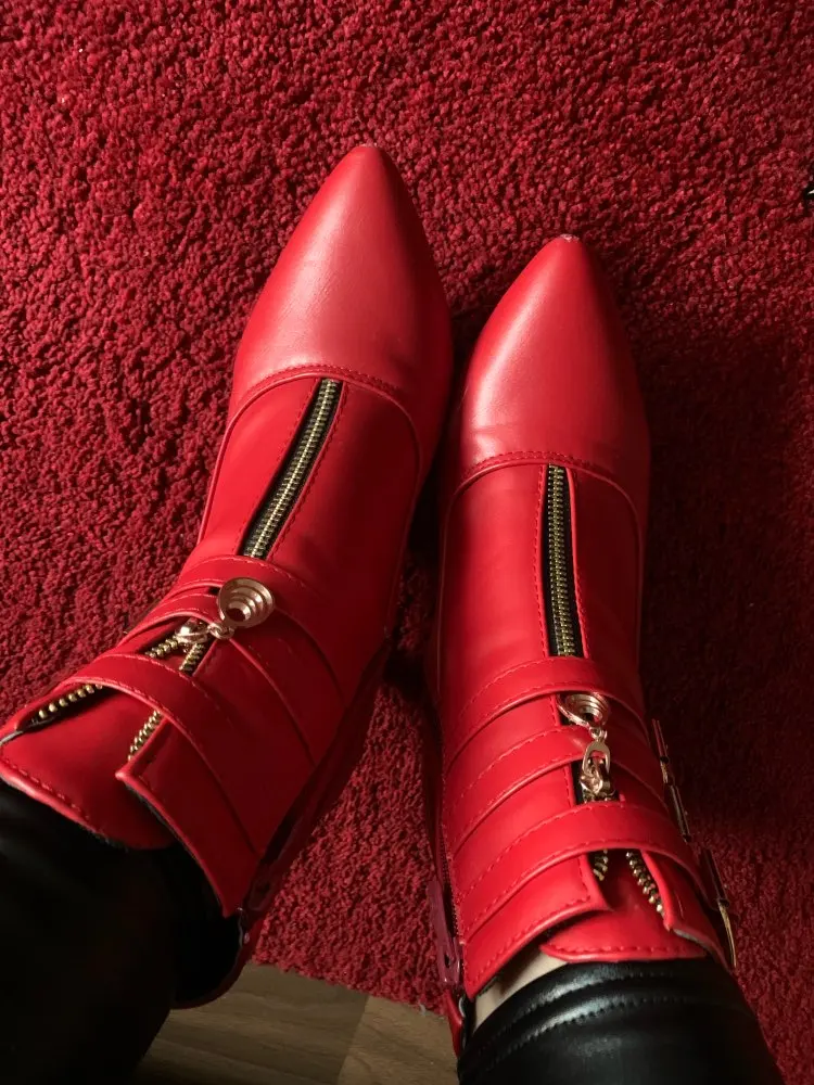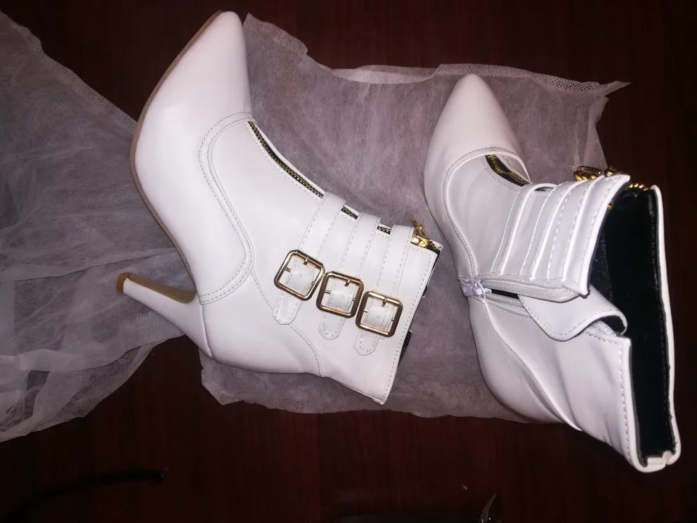 Meotina-Botas de tacón alto para mujer, botines con hebilla de punta estrecha, zapatos con cremallera, color blanco, 44 45 11 talla grande, otoño