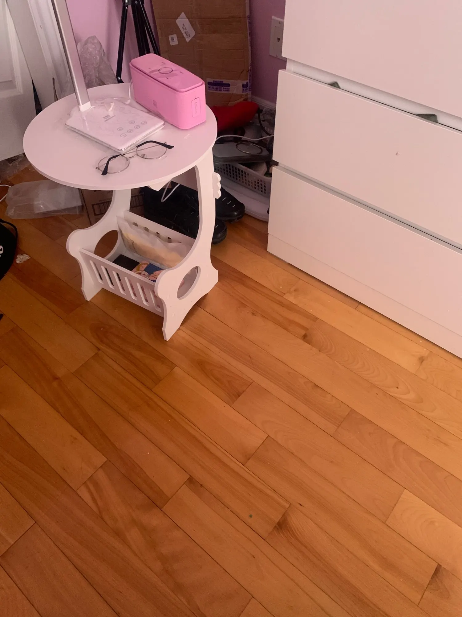 Mesa de centro redonda de plástico para el hogar, Mini estante de almacenamiento para sala de estar, dormitorio, mesita de noche blanca, K-STAR, europeo
