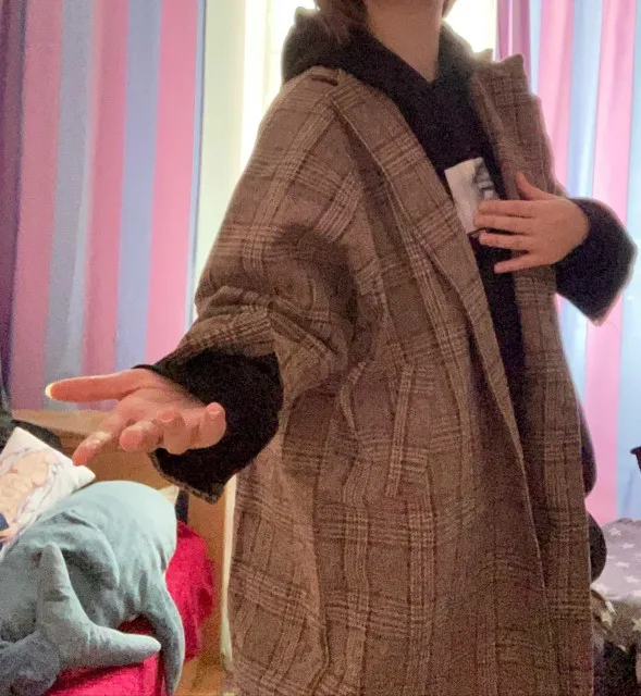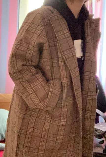 Mezcla de abrigo largo a cuadros para mujer, bolsillos, cruzado Simple, elegante, ropa de calle para mujer, prendas de vestir de lana fáciles de combinar, Chic