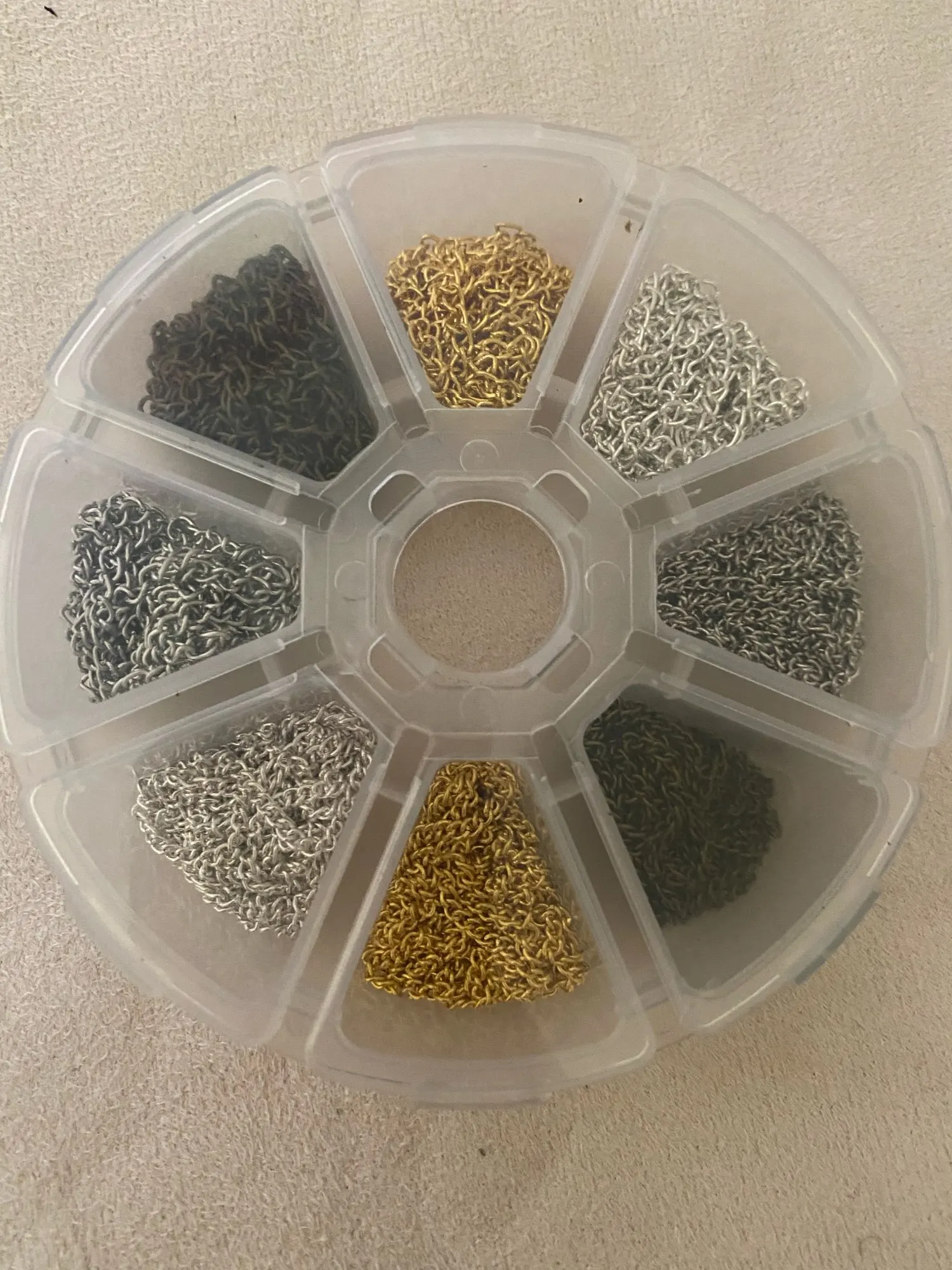 El artículo es tal cual a la descripción. La caja pensaba que iba a ser más grande, pero es pequeñita. En el cajón de los enganches plateados, han venido menos y unos hierros que creo son para hacer pendientes. Por lo demás todo como la descripción. Por el tema del Covid19 el pedido se ha retrasado bastante, como casi 2 meses. La comunicación con el vendedor ha sido pésima.