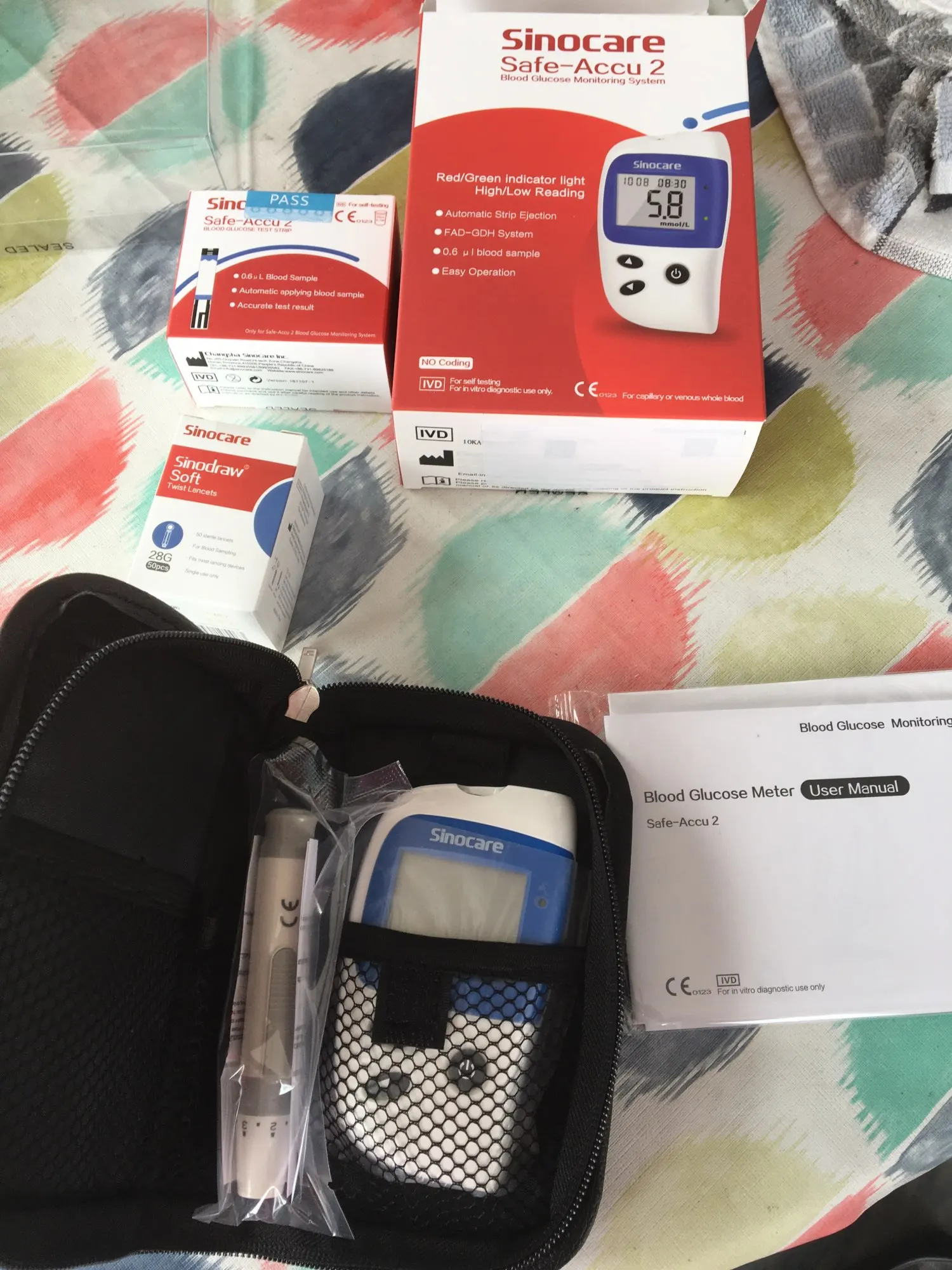 (Mg/dL del mmol/L)Sinocare seguro Accu2 Diabetes glucómetro GLM con 50 tiras de prueba 50 lancetas de medidor de glucosa en sangre prueba de azúcar en la sangre
