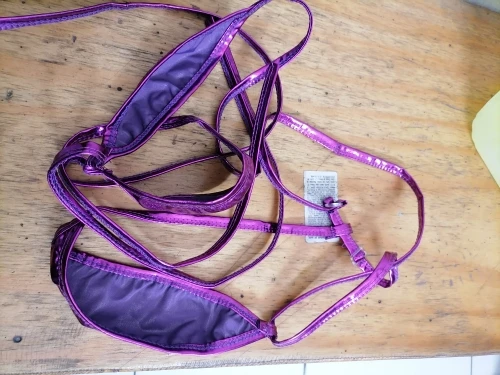 Microbikini de talla grande para mujer, traje de baño de mujer, bikini de charol de color bronce con cordón Halter, Tanga para discoteca