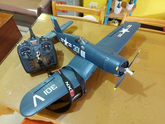 Mini Avión de Control remoto con giroscopio para niños, Avión de radiocontrol de 800MM, FMS, F4U, Corsair V2, PNP azul, con reflejo