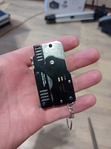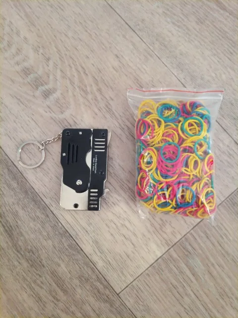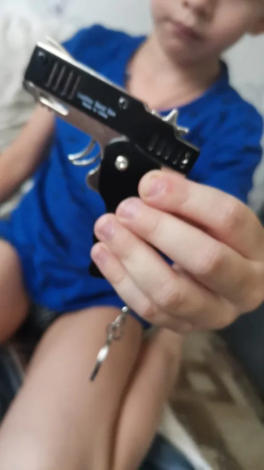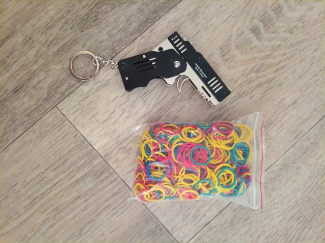 Mini llavero plegable de la banda de goma pistola, seis ráfagas hecho completamente de Metal, pistolas de tiro de juguete, regalos para niños, herramientas para exteriores