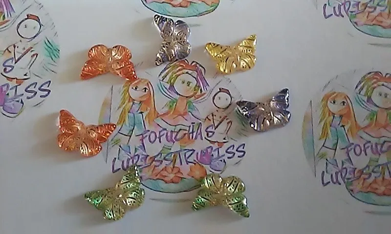 Mini mariposa de Colores acrílicos brillantes, cabujón Kawaii, bricolaje, álbum de recortes, lazos para el pelo, centro, 50 Uds.