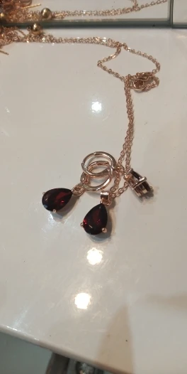 Conjunto con piedra roja muy elegante y femenino