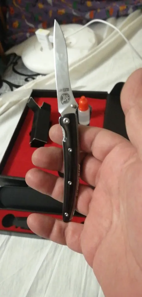 MITSUMOTO-cuchillo plegable SAKARI Wyvern, japonés, hecho a mano, Sandvik 12CR27, Navajas de bolsillo de acero en polvo, mango de ébano antiguo