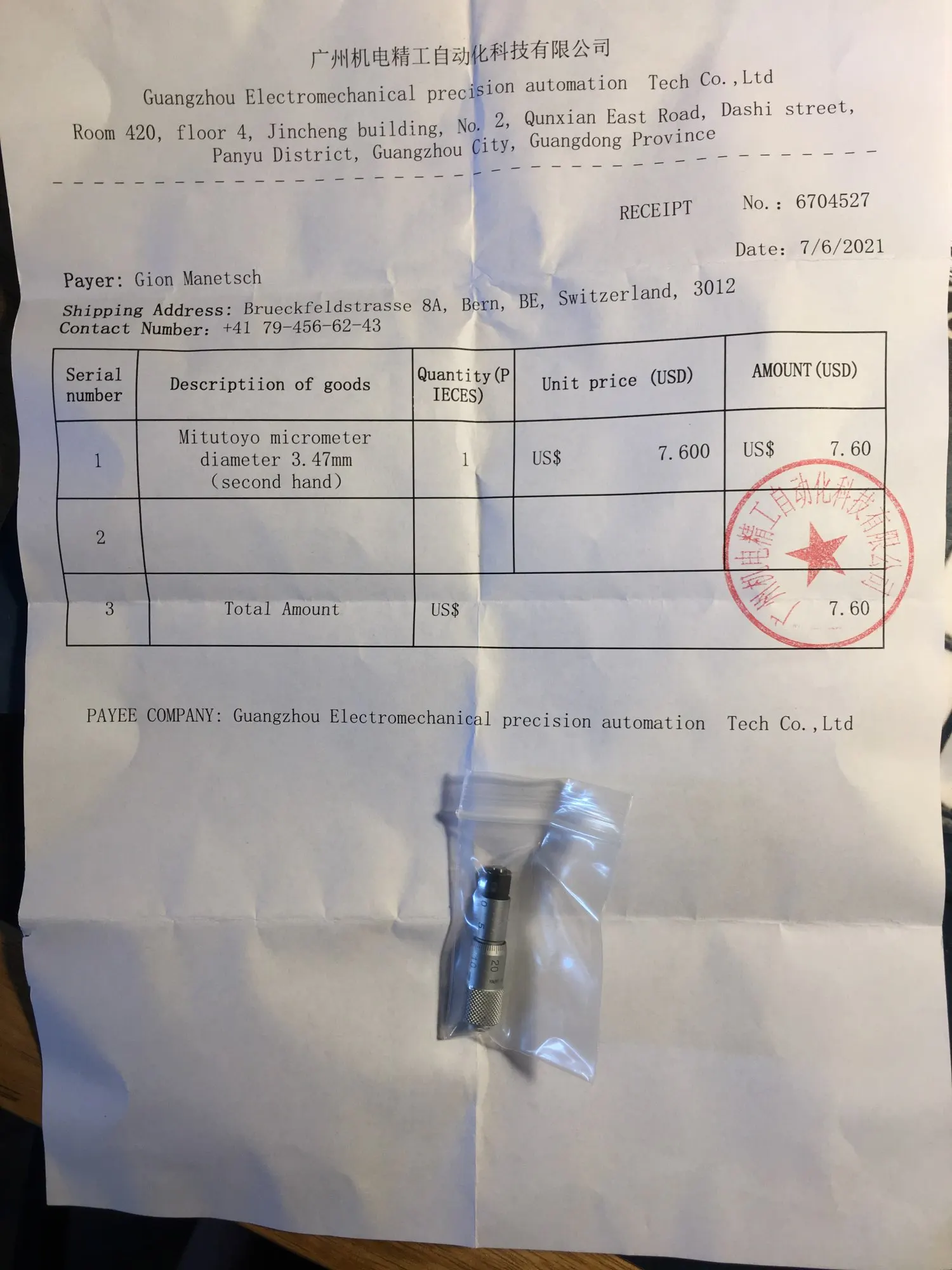 Mitutoyo micrómetro Mitutoyo tornillo Micrómetro de instalación de 3,47mm de diámetro
