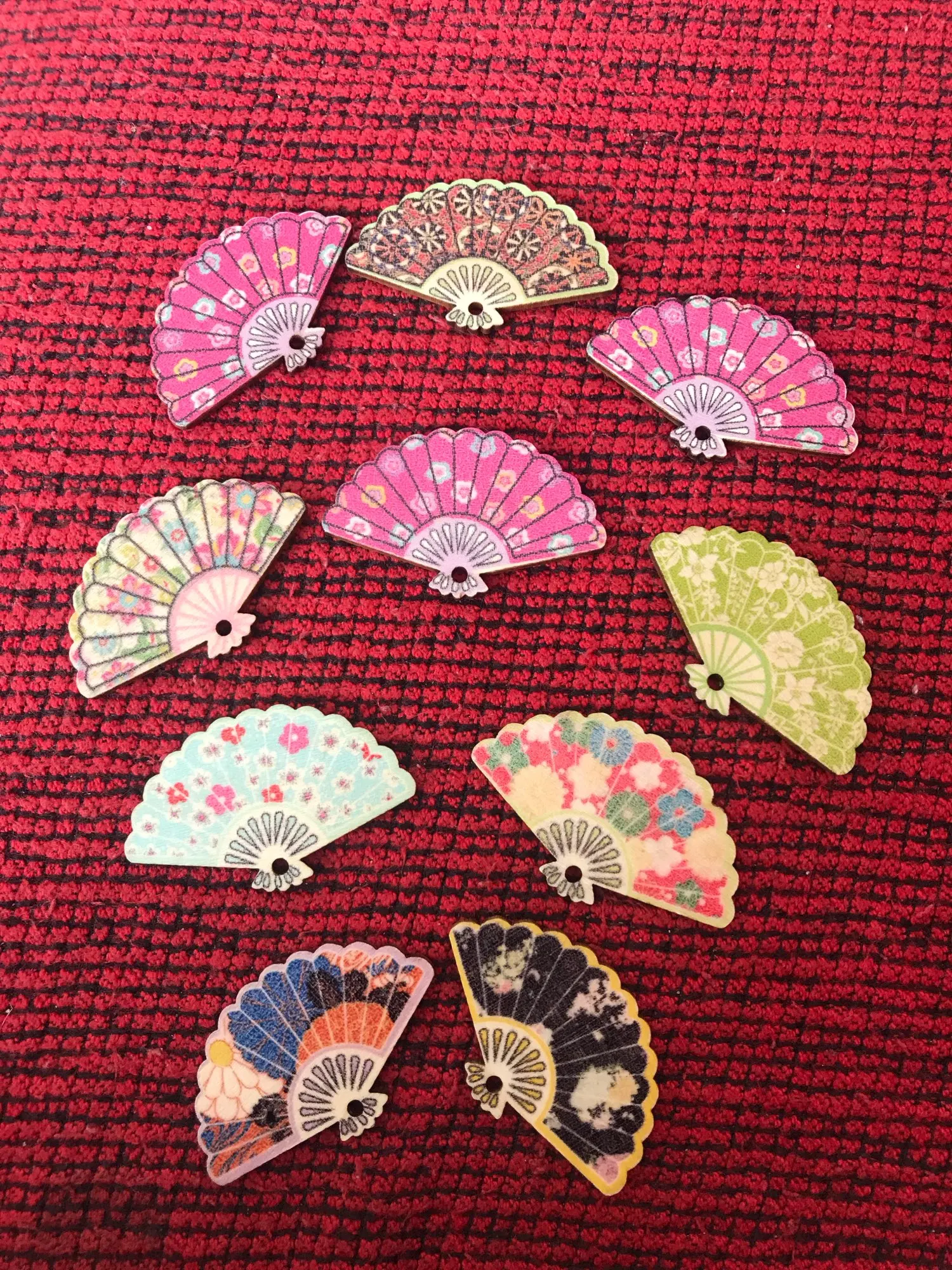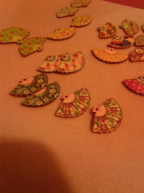 Me esperaba que los diez estuvieran emparejados para hacer pendientes. Pero no ha sido así. Solo dos forman pareja. Son muy bonitos.