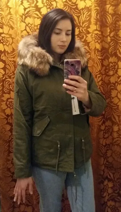 MMK 2017 moda mujer ejército verde grande de piel de mapache collar con capucha abrigo parkas outwear desmontable piel de conejo forro chaqueta de invierno