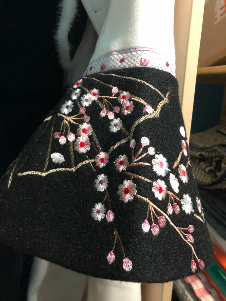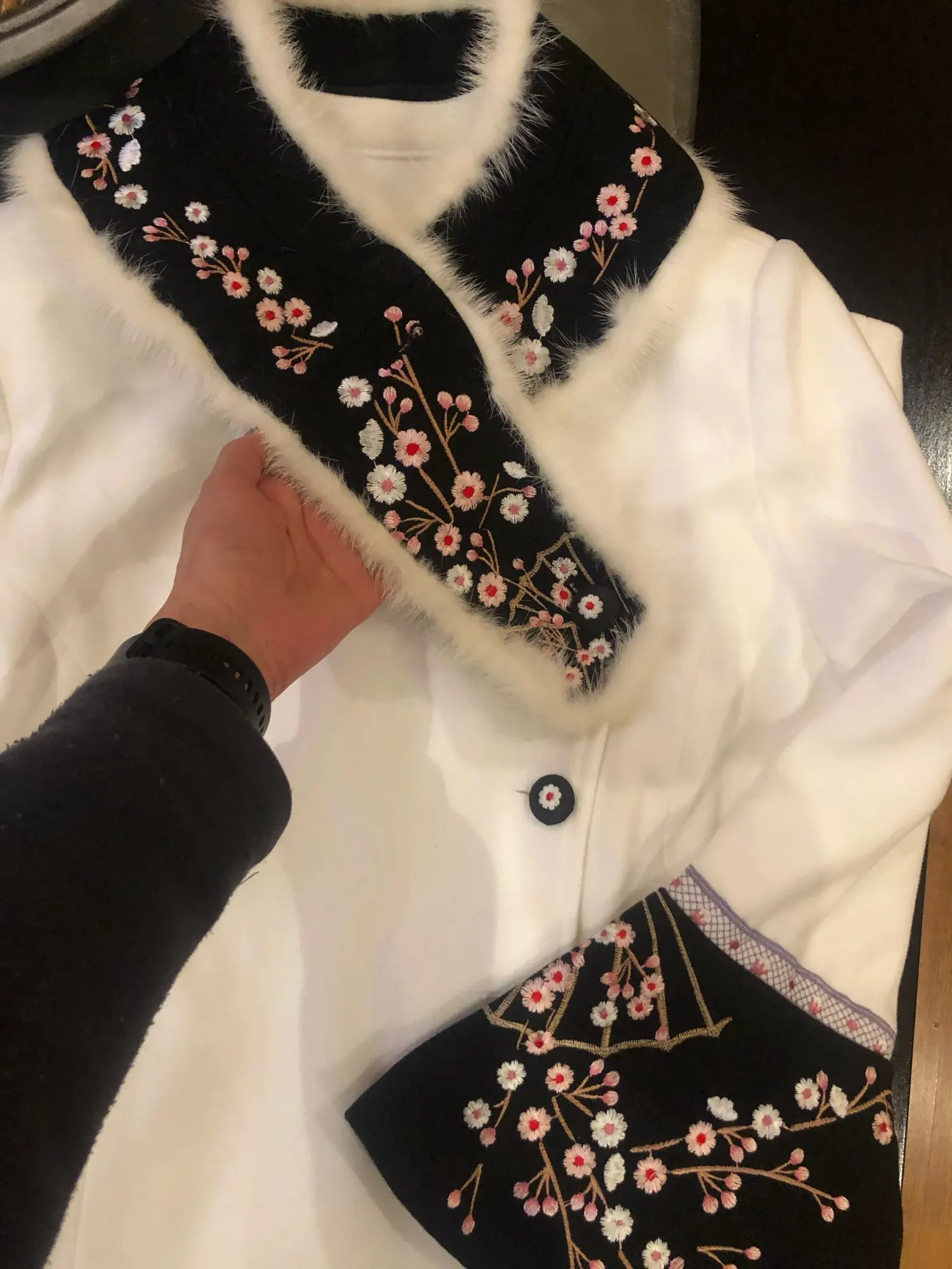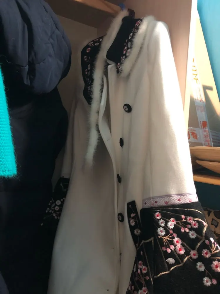 MoaaYina-abrigo de lana de diseñador para mujer, piel de conejo con cuello de abrigo de invierno, bordado de manga larga, abrigo elegante que mantiene el calor