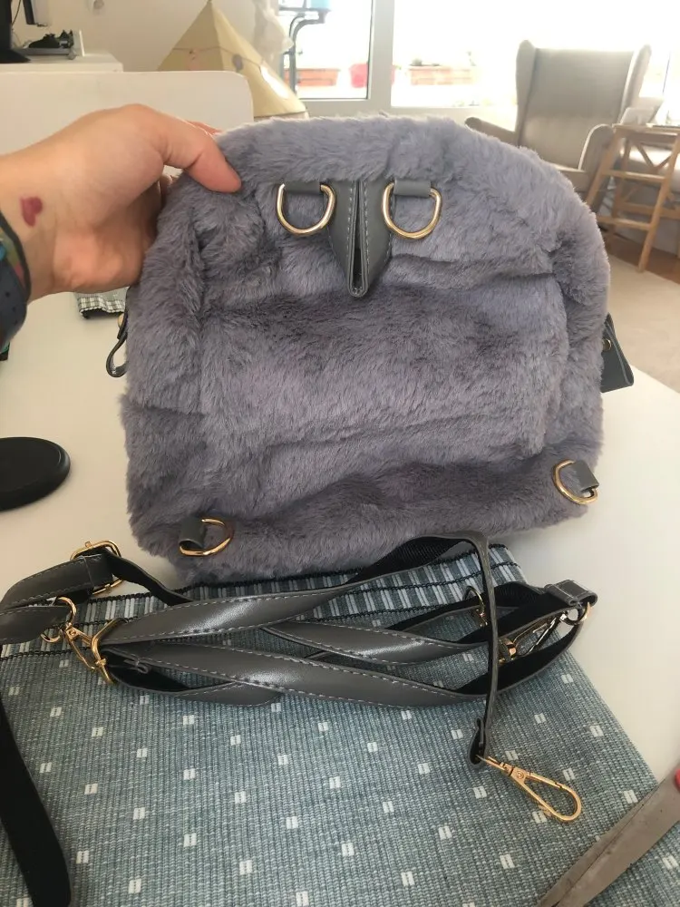 Mochila con Orejas de conejo peludas para mujer, bolso de hombro para chica, Mini mochila escolar de felpa mullida, bolsa de viaje para invierno