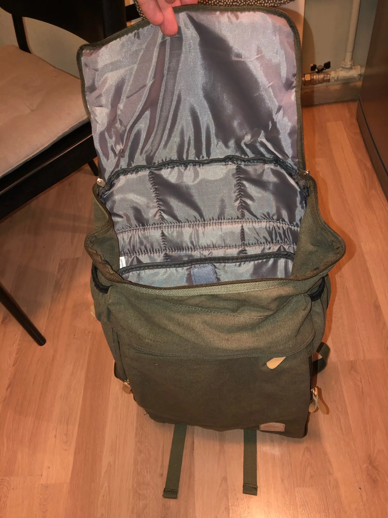 Bonita y amplia (tamaño grande). Parece bien cosida y la lona resistente. Me gusta más que en la foto. Cabe el ordenador, ropa para un fin de semana (o algo más), bañador, toalla. Podía tener un bolsillo interior hubiera sido un buen punto. Solo tiene el apartado del ordenador acolchado. Muy contento.