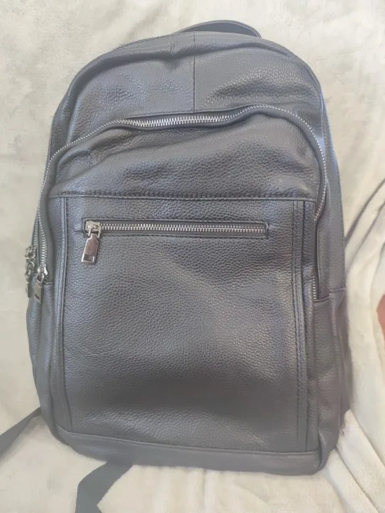 Mochila de piel auténtica para hombre, morral para ordenador portátil de 14 pulgadas, de viaje, a la moda, escolar