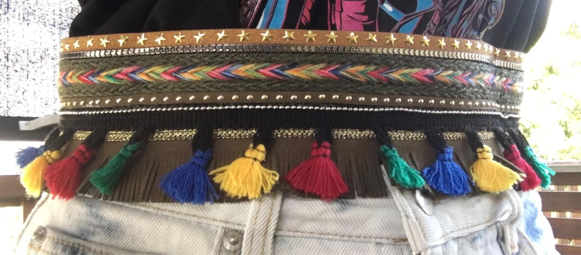 Moda Bohemia impresionante gitano cinturón sobre vaqueros Estilo bohemio de verano para vocación, playa de joyería