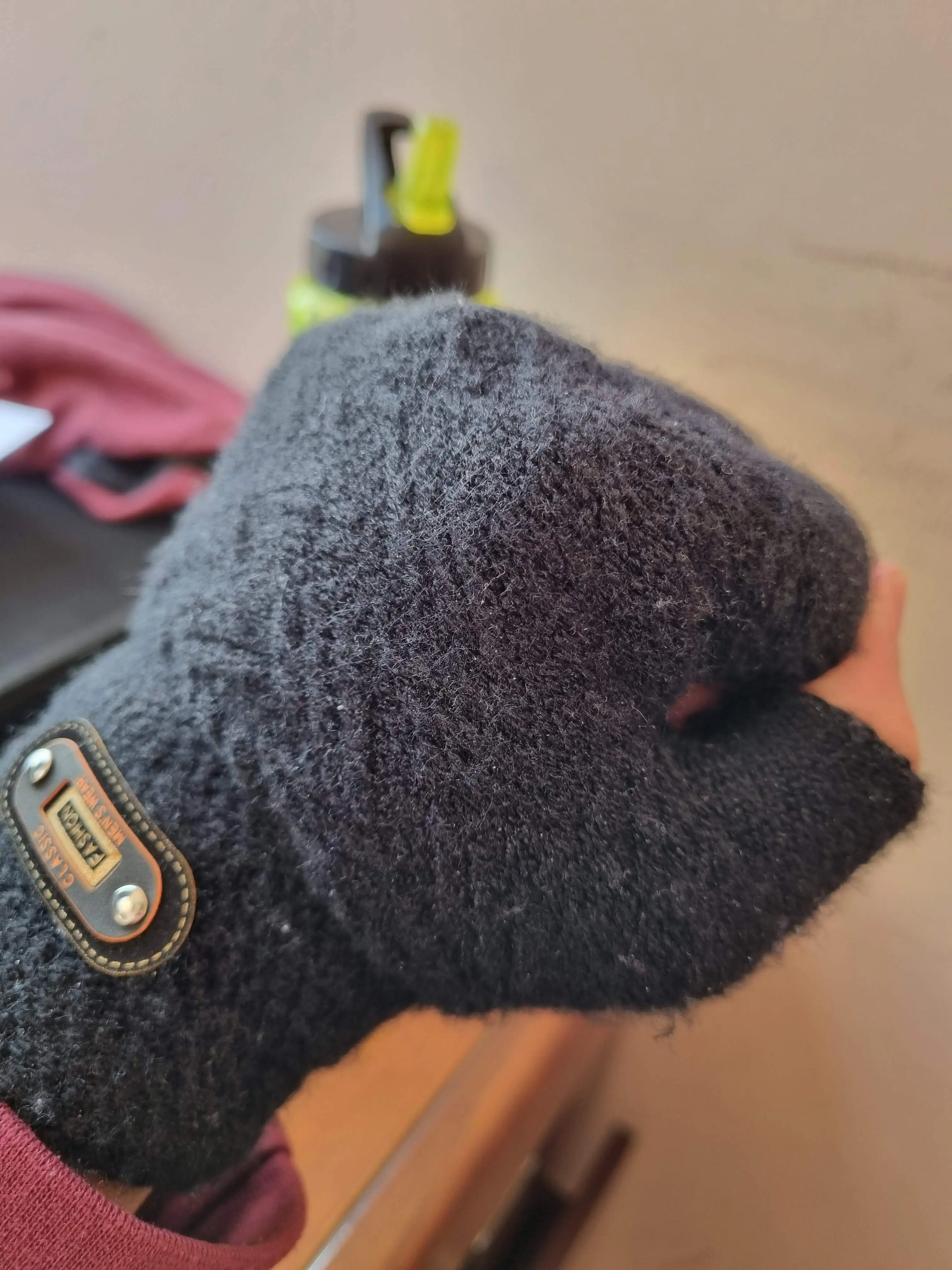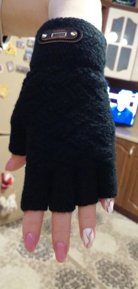 Moda invierno lana acrílica más felpa gruesa de punto Jacquard manopla caliente de mitad de dedo de los hombres de dedo completo para pantalla táctil guantes C2